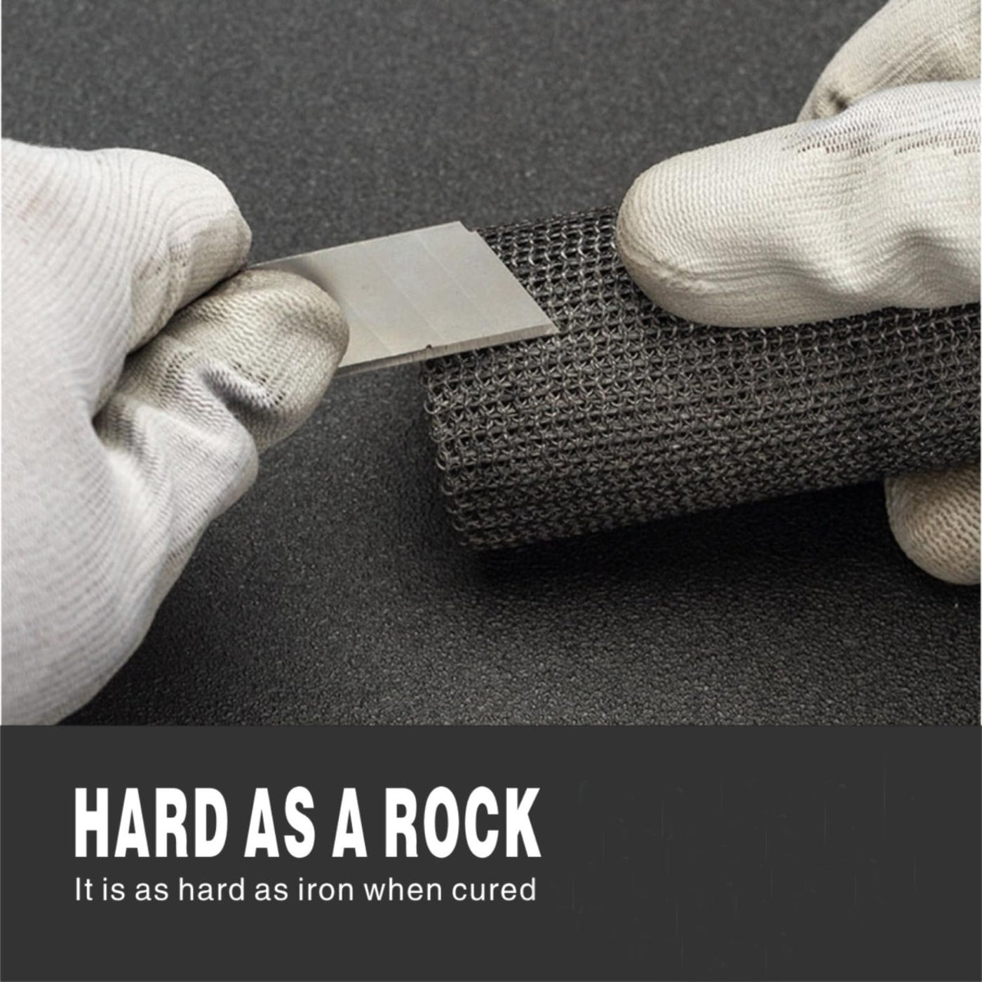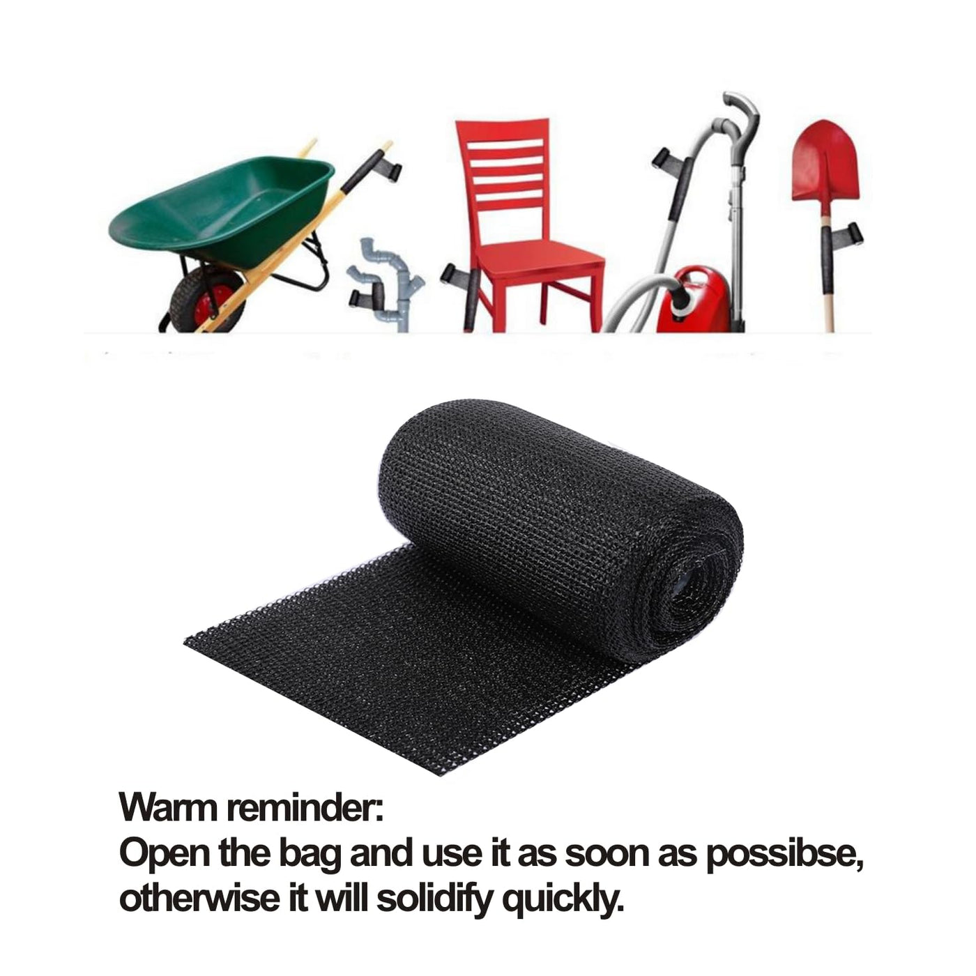 The fiberglass tape is packaged in a sealing aluminum foil bag. It is a flexible fiberglass cloth tape that is cured black polyurethane resin syrup and begins to solidify when soaked in water. Once in contact with water, the fiberglass will stick together, making it easy to wrap around damaged surfaces such as wires, cables, and pipes.Before operation, please clean the repair surface, wear gloves, tear open the bag, pour water into the bag to completely submerge the tape. After a few seconds, take out the fiberglass tape, squeeze out the excess water, and start wrapping.Glass fiber repair tape helps DIYers of all skill levels confidently complete projects of all sizes. Our mission is to help you tap into the self-confidence and self- sufficiency you already possess, and become the strongest version of yourself.