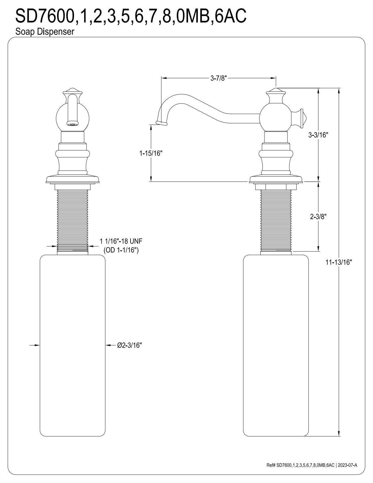 The Kingston Brass Vintage curved nozzle soap dispenser provides a cleaner look in the kitchen by allowing users to keep soap dispensers off the counter. Easily dispense soap with the push-down mechanism while adding a stylistic flair to your traditional home.