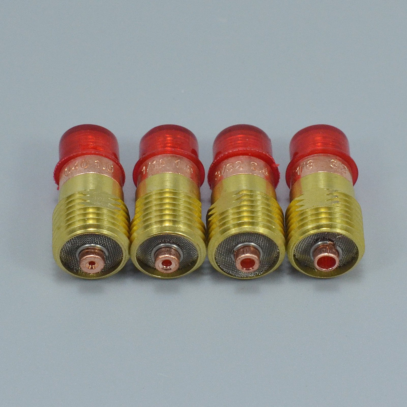 Packing Listing: 1pcs 0.040" & 1.0mm 17GL040 Stubby Gas Lens 1pcs 1/16" & 1.6mm 17GL116 Stubby Gas Lens 1pcs 3/32" & 2.4mm 17GL332 Stubby Gas Lens 1pcs 1/8" & 3.2mm 17GL18 Stubby Gas Lens 1pcs 0.040" & 1.0mm 10N22S Collet 1pcs 1/16" & 1.6mm 10N23S Collet 1pcs 3/32" & 2.4mm 10N24S Collet 1pcs 1/8" & 3.2mm 10N25S Collet 1pcs 4 Ref NO: 53N58 D6.5 x 25.50 mm 1pcs 5 Ref NO: 53N59 D8.0 x 25.50 mm 1pcs 6 Ref NO: 53N60 D9.5 x 25.50 mm 1pcs 7 Ref NO: 53N61 D11.0 x 25.50 mm 1pcs 8 Ref NO: 53N61S D12.50 x 25.50 mm 1pcs 57Y04 short back cap 1pcs 57Y03 middle back cap 1pcs 17GLG20 Gas len insulator This Studdy Gas lens & Collet kits fits all 17 & 26 series air cooled torches and 18 series water cooled torches, including the Lincoln PTA-17, PTA-18 and PTA-26 torches,Miller Diamondback DB17,DB18 and DB 26 torches, along with the Weldcraft WP-17, WP-18 and WP-26 torches.