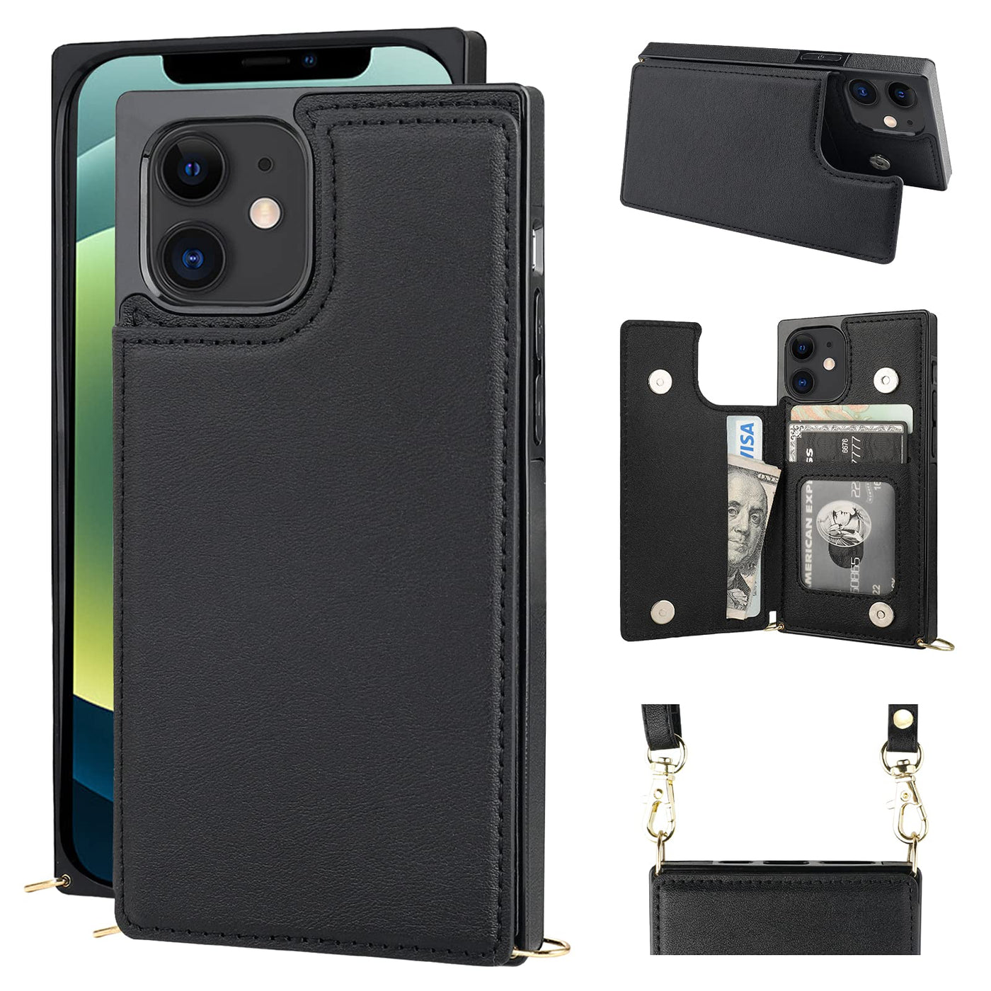 Bocasal Crossbody Wallet Case for iPhone 12 Mini Credit Card Holder PU Leather Kickstand Shockproof Detachable Cross Body Strap Lanyard Magnetic Closure 5.4 inch(Black)