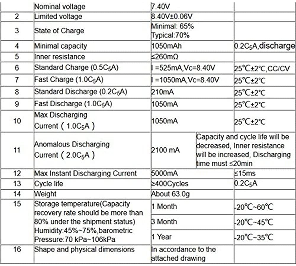 • Capacity: 1050mAh / 7.77Wh. Type: Li-ion. Volts: 7.4V; 80% power remained after 400 cycles, same as original battery.