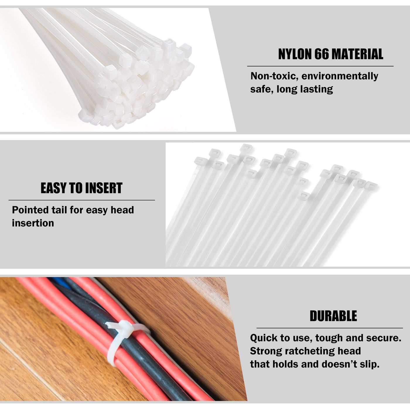• High Quality 66 NylonSuperior quality, heavy-duty industrial strength material (66 Nylon) guarantees that these zip-ties are stronger than others on the market.