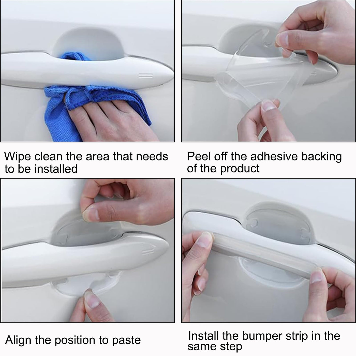 - Easy to Install: 1. Clean car door handle cup and let it dry; 2. Tear off the protector film from adhesive backing; 3. Stick film onto the cup and adjust the perfect position.
