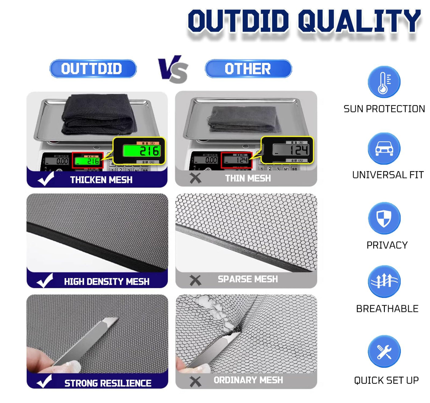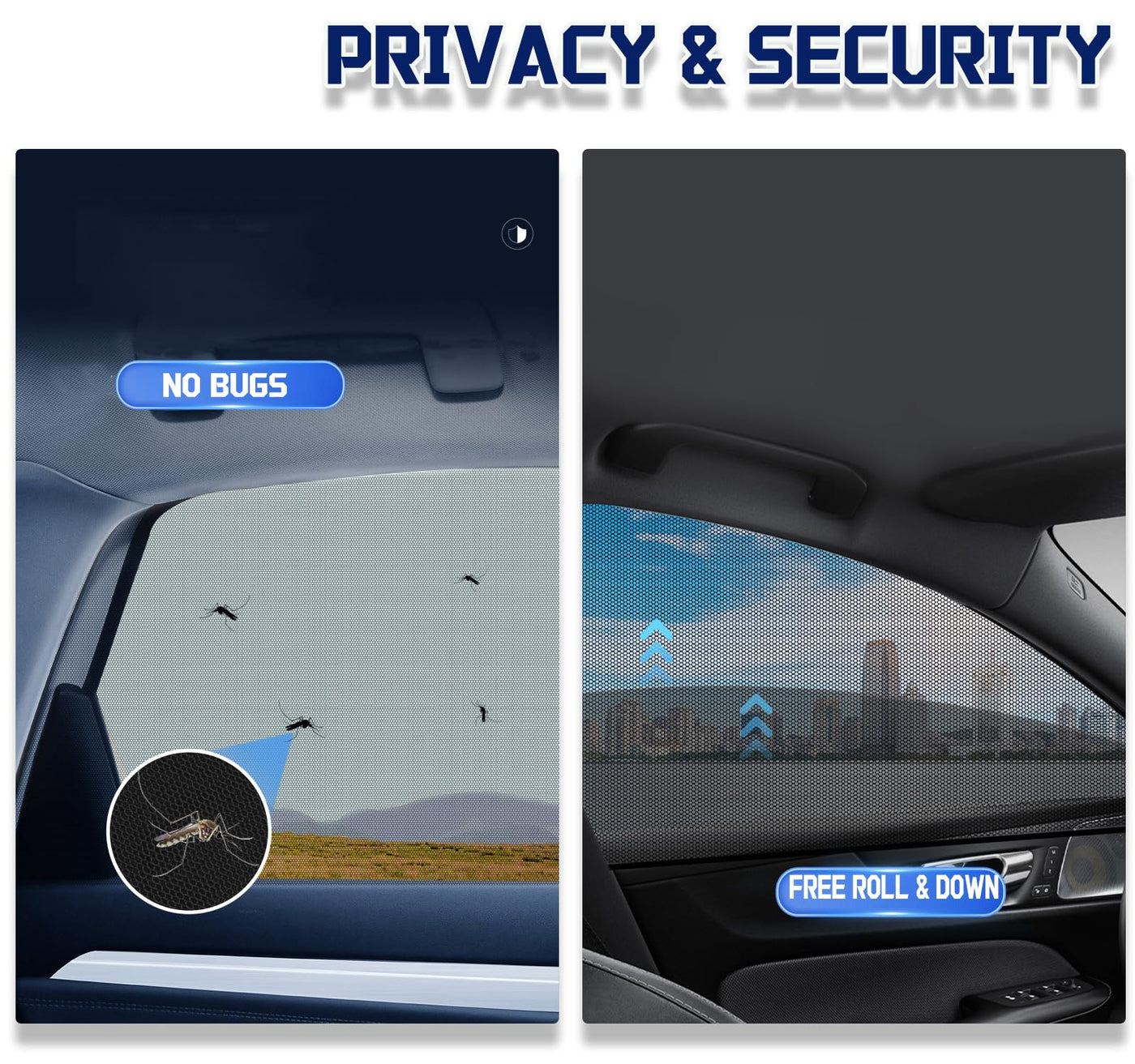 - Privacy and Comfort || Because the Stretchy nylon mesh sunshade puts on the door frame, so you can still open or close the windows according to your needs and enjoy a fresh air when family car camping.