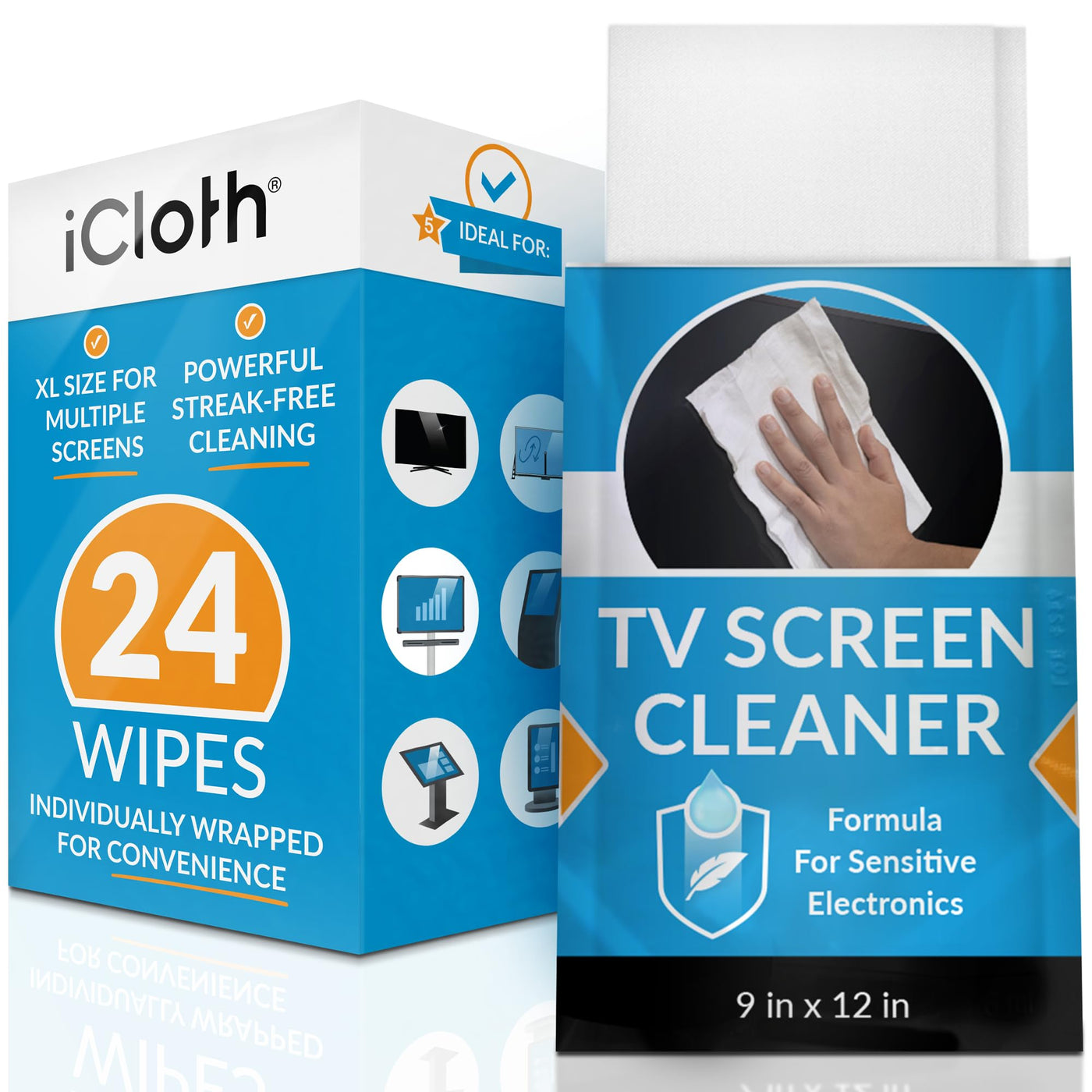iCloth for Electronics | Monitor Cleaner and TV Screen Cleaner Wipes: Individually Sealed specially formulated alcohol wipes Easily Lifts Oil, Grease, Fingerprints, Makeup - Use as TV Screen Cleaner