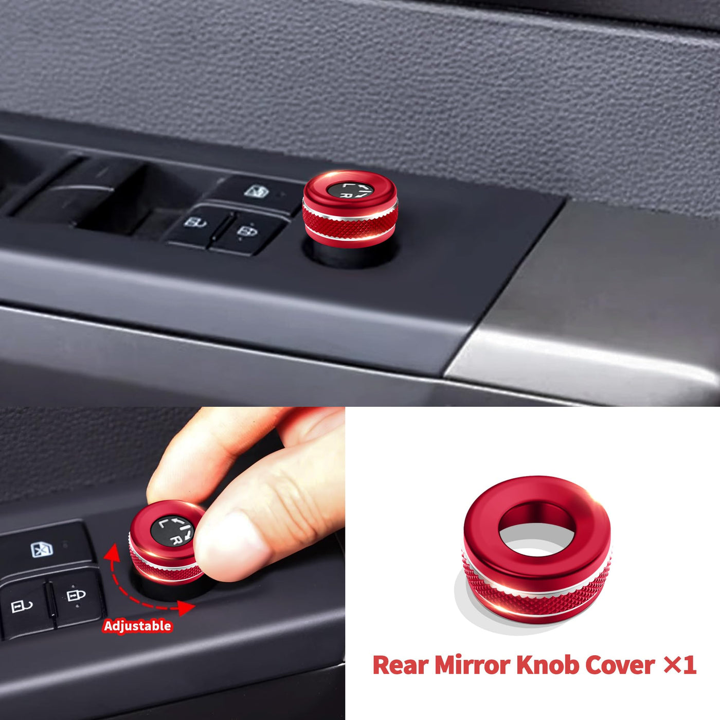 Knob Cover Accessories for Toyota Tundra 2022-2025 & Sequoia 2023-2025, 5pcs Aluminum Alloy Trim Set (Red, 14-inch Display Screen)