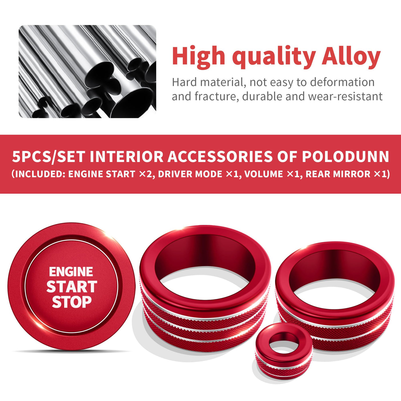 - What You Get: 5pcs/set, including 1 drive mode knob cover, 1 rearview mirror adjustment knob cover, 1 volume tune knob cover, 2 push start button cover/ring. We've got a professional quality control team, and all the products we sell have passed quality inspection _x000d_
