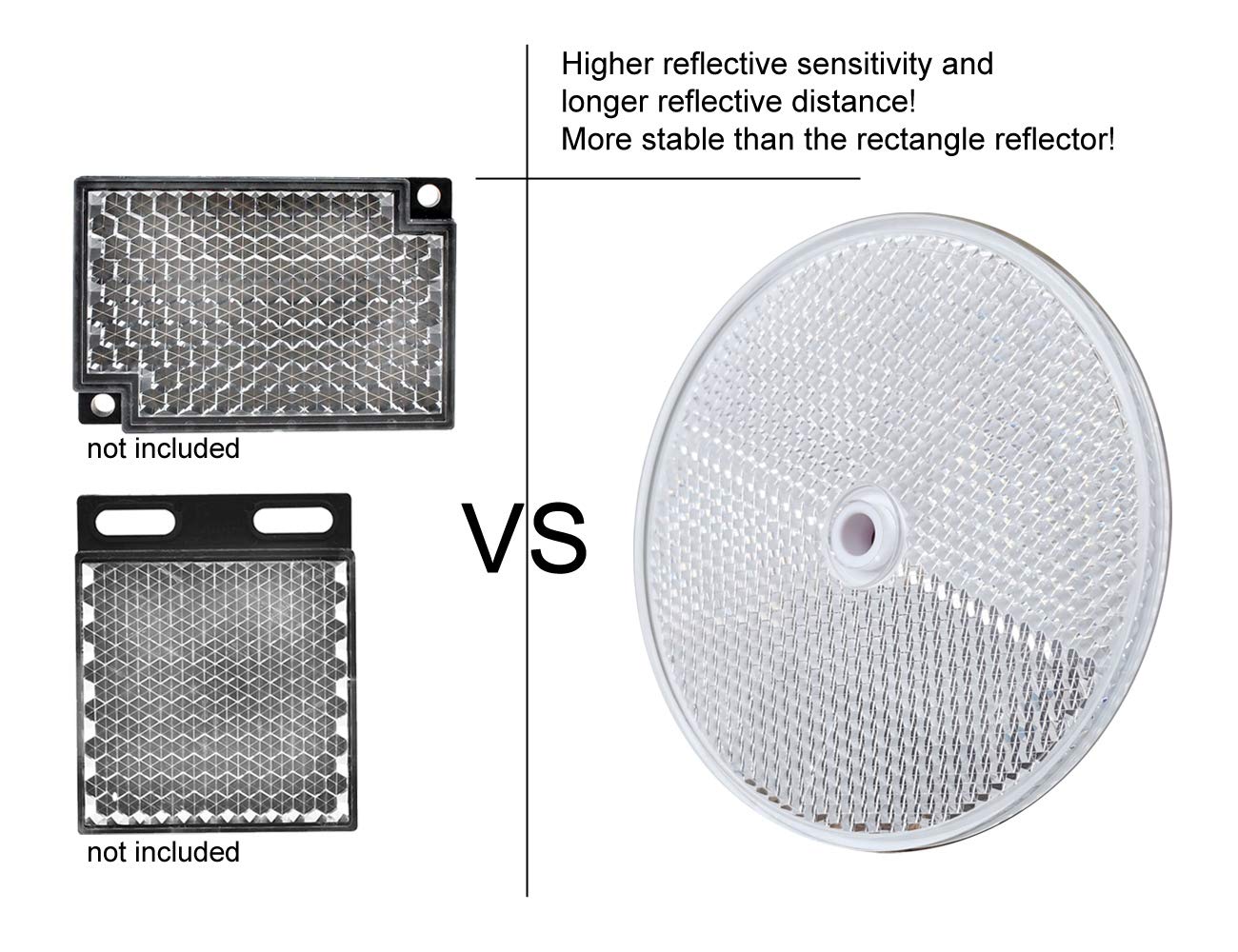 - BIG SIZE OF REFLECTOR for easy alignment and longer detecting distance than the rectangle reflector photoelectric sensor.