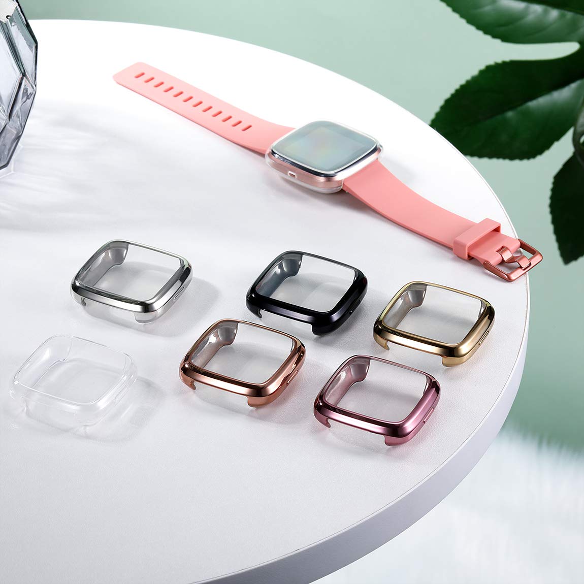 HIGH QUALITY TPU cases can protect your Fitbit Versa 2 from the external damage, like scratching and dropping. This Versa 2 watch case front cover is only 0.3mm which is ultra slim. It's light-weight and does not affect the touch screen on the watch. All the precut holes for the buttons lines down band up perfectly. This flexible and durable case allows easy and convenient installation. 99.99% HD Clarity will not interfere with the screen visuals and usability at all. Read more Maledan Built-in TPU Screen Protector for Fitbit Versa 2 Watch Case Cover Read more Material: HIGH QUALITY TPU material Compatible Devices: Fitbit Versa 2 & Versa 2 SE Multi Colors: Rose Gold, Rose Pink, Gold, Silver, Black, Clear What will you get: 3 × Screen Protector Cases for Fitbit Versa 2A Soft Cleaning Cloth How to ask a question? On this page, click on "Maledan" next to "Sold by", then click on "Ask a question" on the right top of page. Kindly Reminder: 1. Using this product at gym or sports activities may cause the moisture (from perspiration) to be trapped between this product and the watch screen. This is due to the nature of the product as it does not stick to the screen. When there are fog between the case and the screen, please clean the water mist with the clean cloth. 2. Please kindly take off this case if you need to charge the watch. Read more