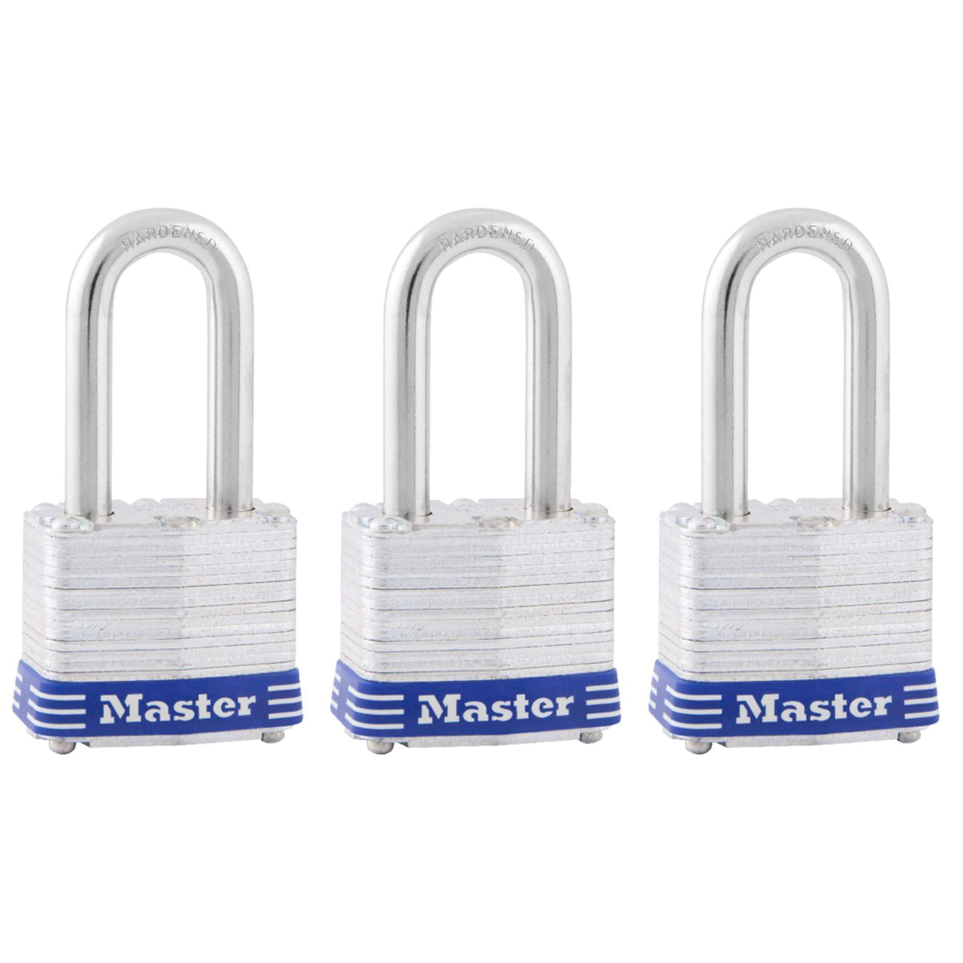 The Master Lock 3TRILF Laminated Steel Padlocks with Key feature a 1-9/16 in. (40 mm) wide laminated steel body for maximum strength and reliability. The 9/32 in. (7 mm) diameter shackle is 1-1/2 in. (38 mm) long and made of hardened steel, offering extra resistance to cutting and sawing. The 4-pin cylinder prevents picking and the dual locking ball bearings provide resistance against prying and hammering. The Lifetime Guarantee provides peace of mind from a brand you know and can trust. From the Manufacturer Master Lock 1-9/16" (40mm) wide Laminated Steel Pin Tumbler Padlock.