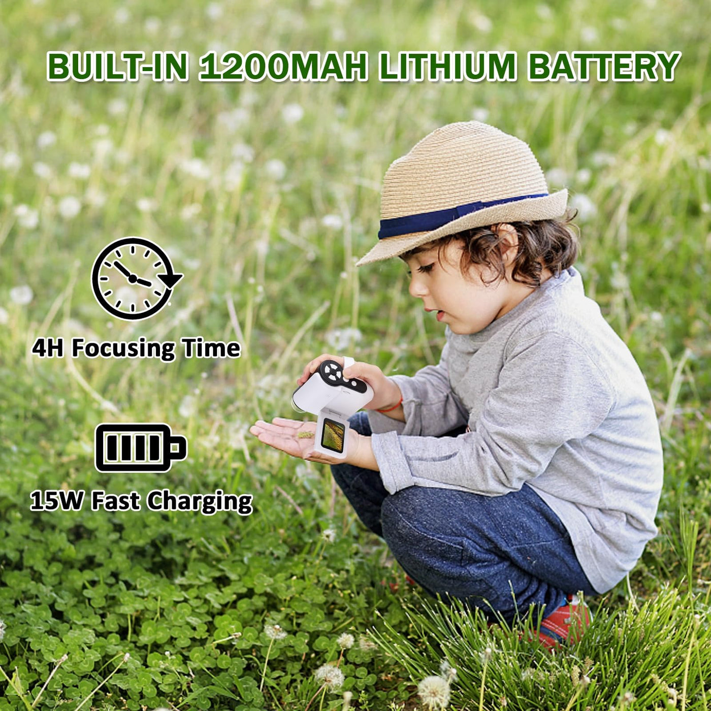 - Portable and Lightweight - The mini microscope weighs less than 300g, and it is small enough for pocket carrying, desirable for on-the-go exploration, whether it's in the backyard, at a park, or during field trips.