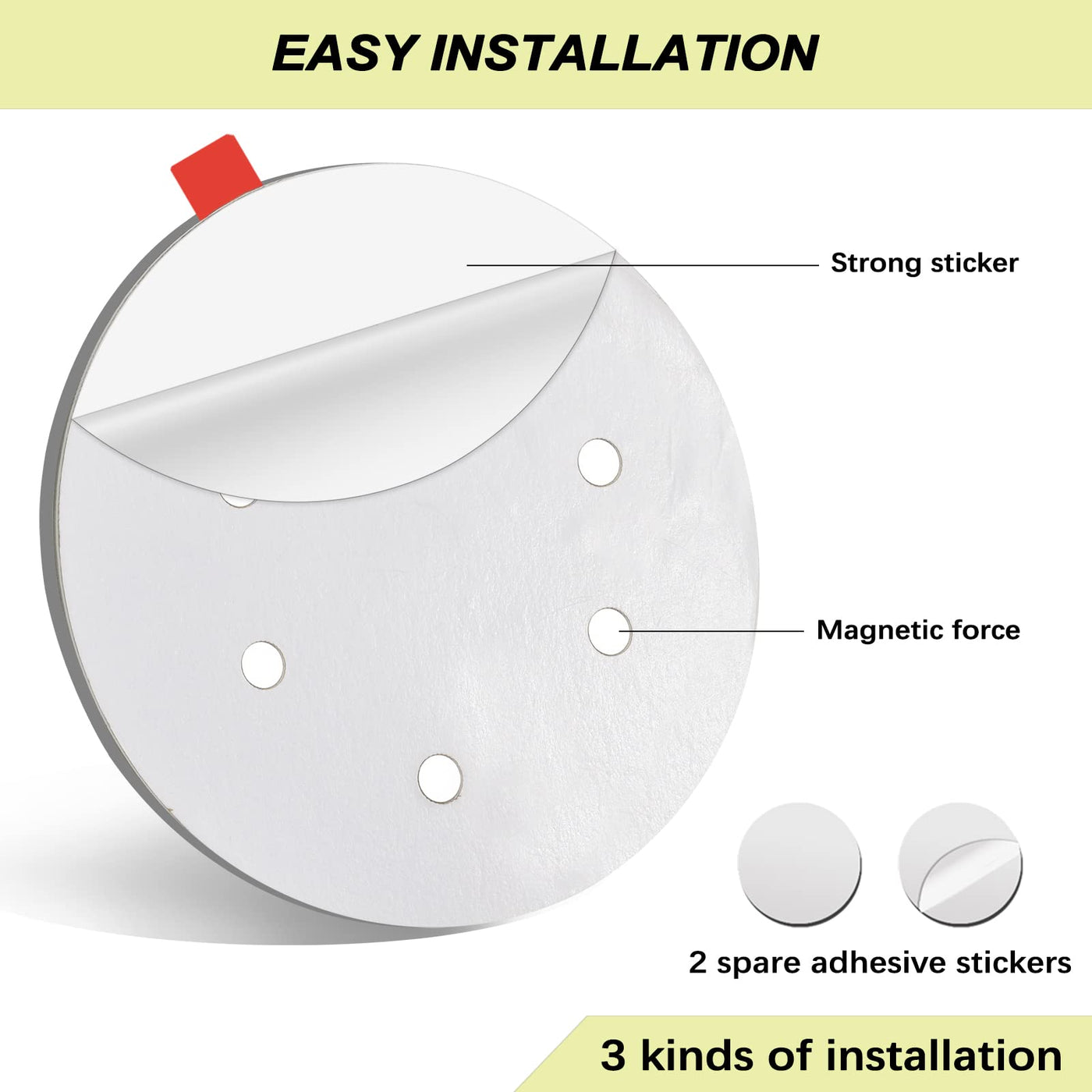 • Convenient to installMagnetic and adhesive sticker option. Convenient to install and no residue left when removed. Works on all occasions , stainless steel, wood cabinet doors etc.