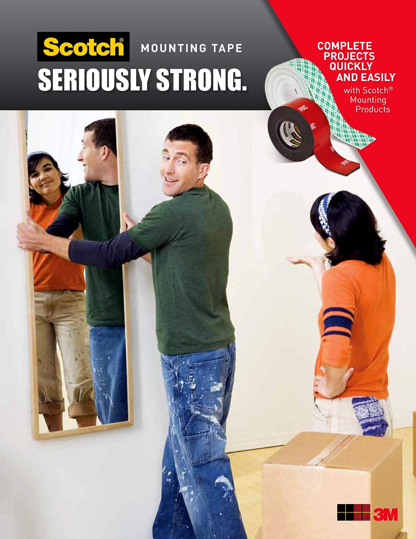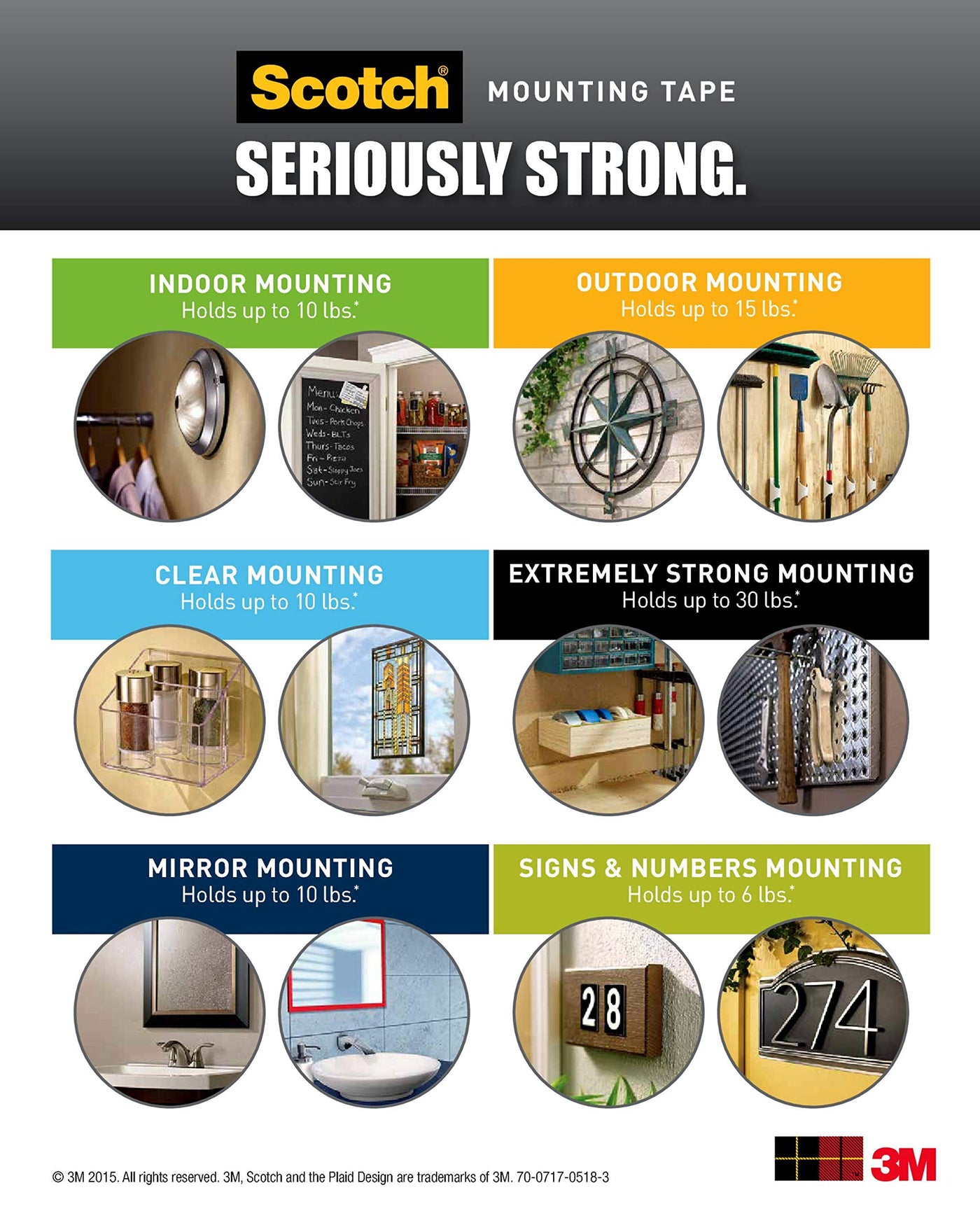 Scotch Delicate Surface Painter’s Tape is great for surfaces that require a little extra care such as wood floors, wallpaper, cabinets, painted drywall, and freshly painted walls (painted at least 24 hours ago). This delicate surface tape with gentle adhesive can stay on surfaces for up to 60 days and then removes easily without leaving any sticky residue behind. This tape features Edge-Lock Technology that seals out paint to deliver sharp paint lines and clean removal for your more sensitive projects, including accent walls, decorative stripes and patterns. Whether you're protecting your hardwood floors from paint splatter or going all out with a decorative mural, rely on Scotch Delicate Surface Painter's Tape for a professional look that's easy on your surfaces. From the Manufacturer This professional-quality tape is designed for attaching items up to 5 pounds to virtually any smooth surface. It is weather-resistant and holds securely even on rough outdoor surfaces such as brick or stucco.