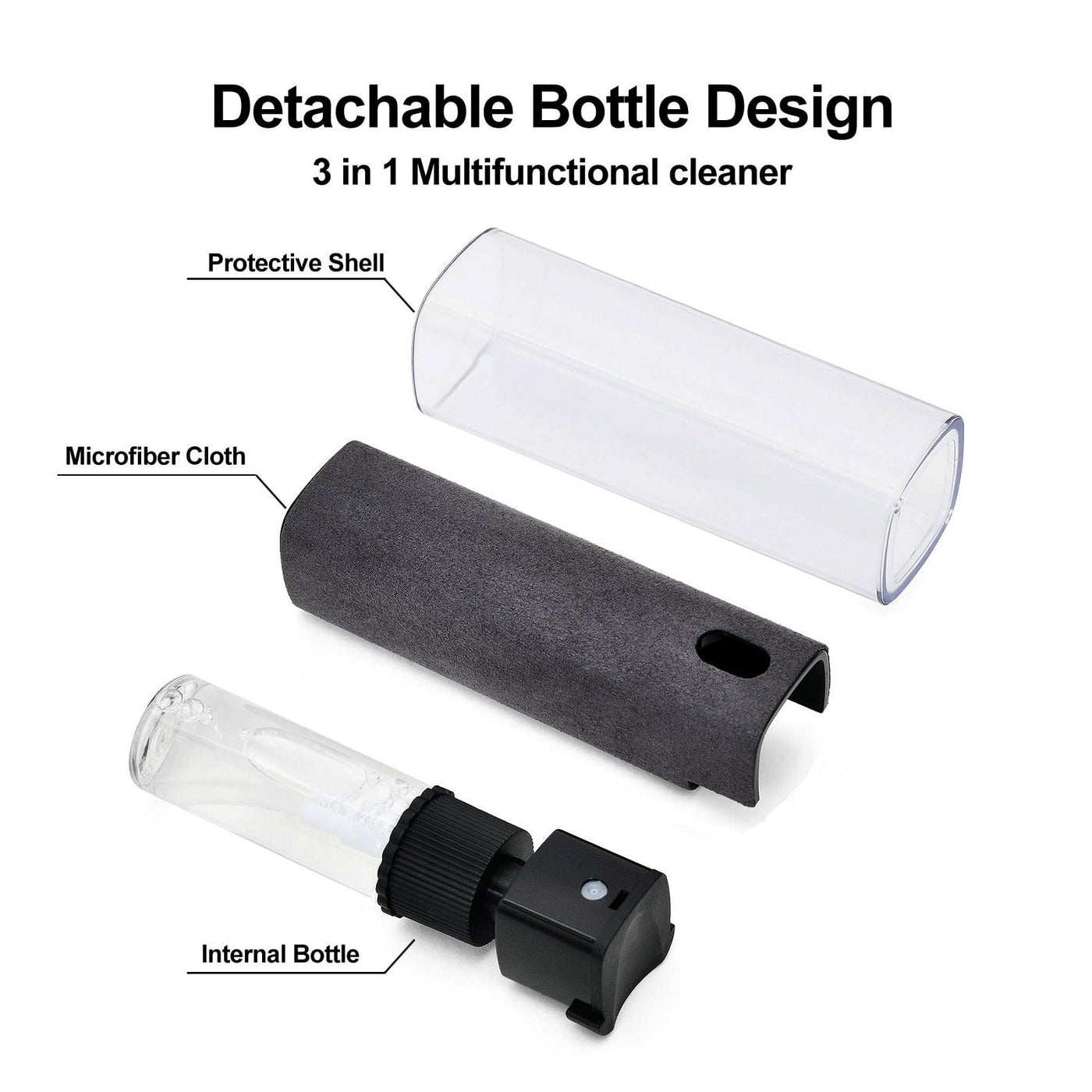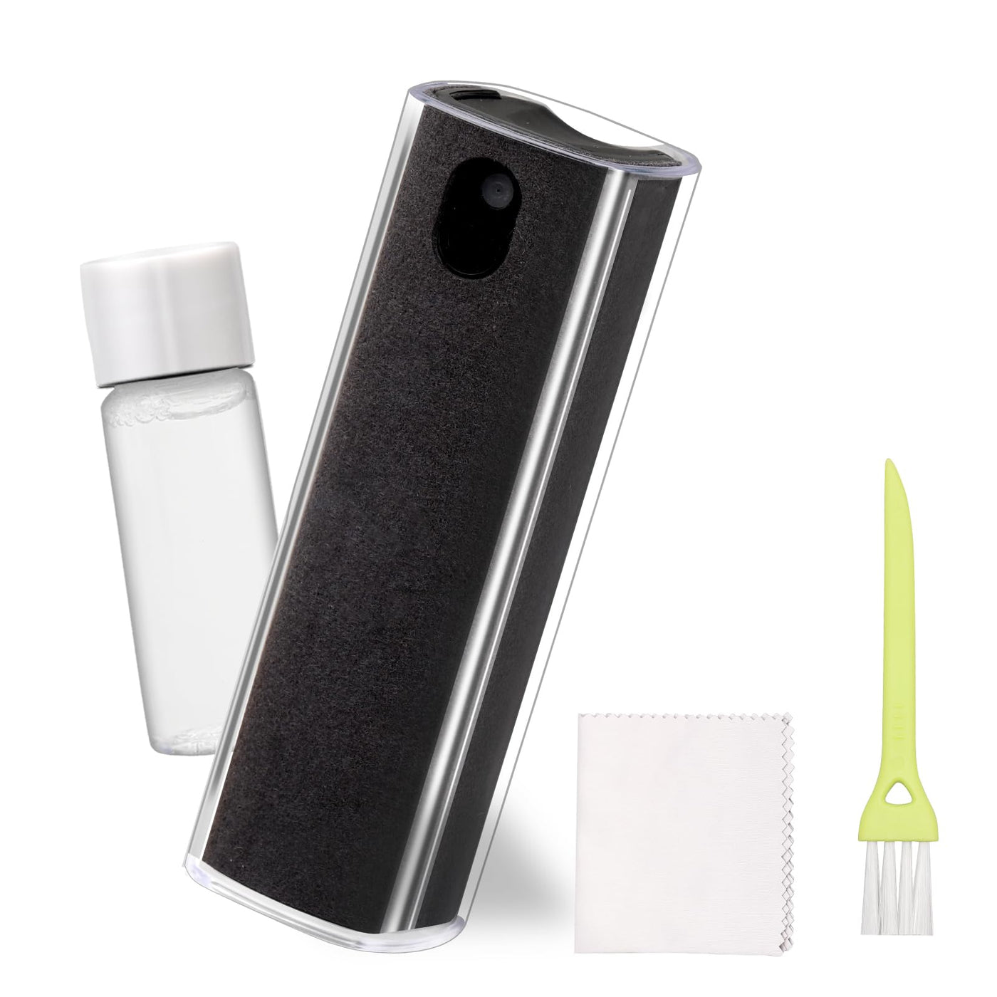 - 2 in 1 Mist Screen CleanerAll in one portable screen cleaner, including fingerprint proof screen cleaner (containing 10ml of cleaner), a 10ml bottle of screen cleaner supplement, a small brush, and a microfiber cleaning cloth