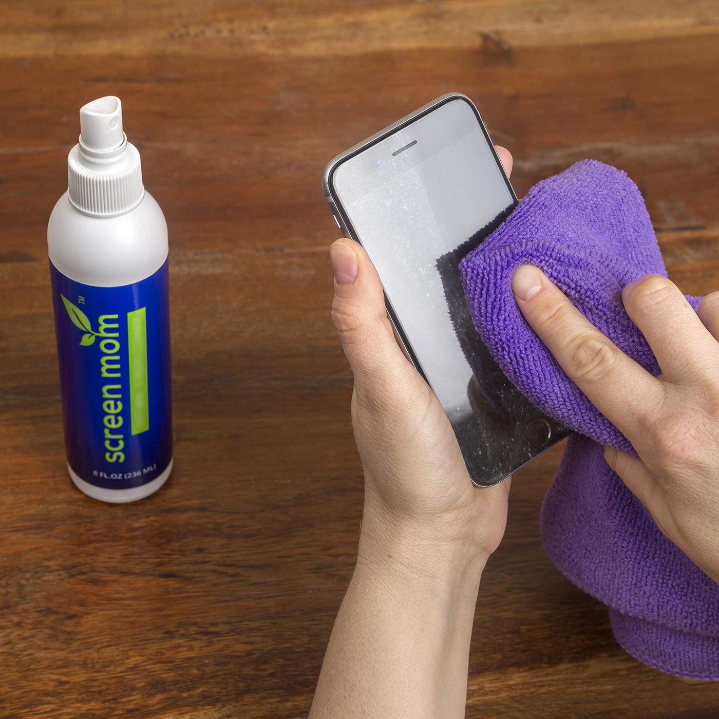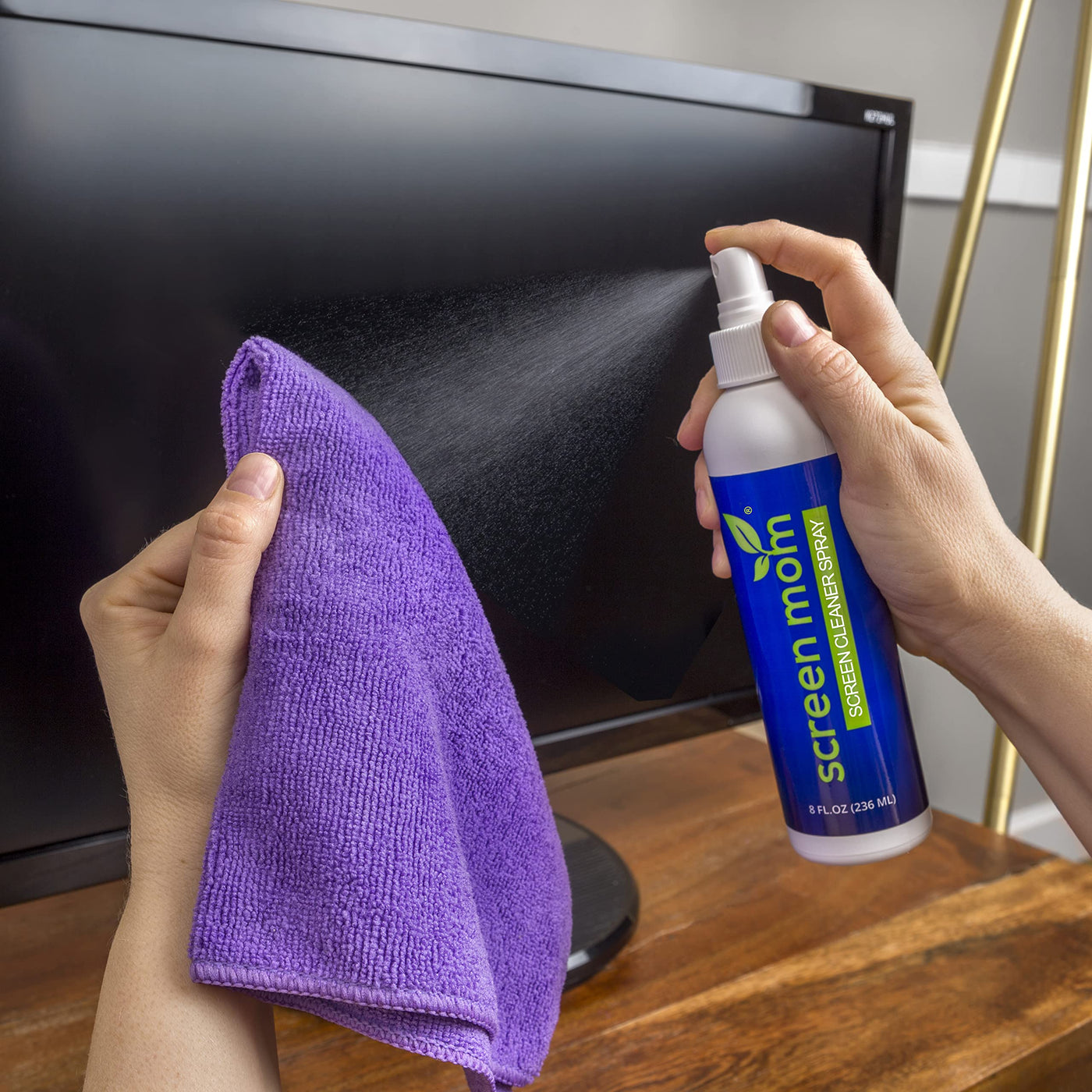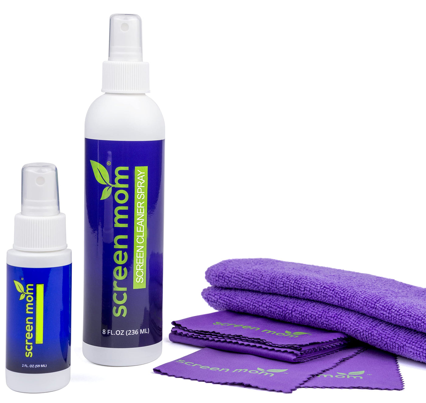 Screen Mom Screen Cleaner Home & Away Bundle – Designed for LED, LCD, Plasma, TV, iPad, Laptop, Computer Monitor, Tablets, Phones, & Eyeglasses - Includes 8oz & 2oz Bottle with 4 Microfiber Cloths