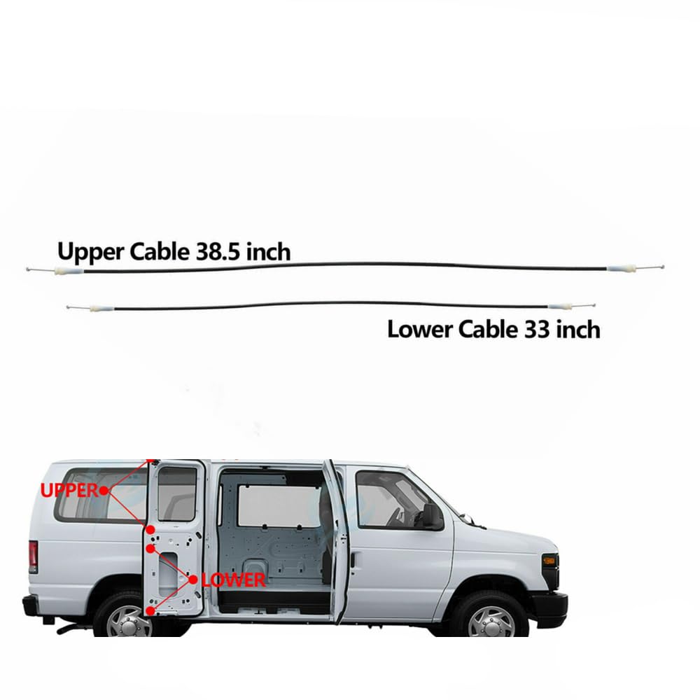 Side Cargo Door Left Upper & Lower Latch Release Cable for Ford E150 E250 E350 E450 2003-2007 AC2Z-15264A26-B, 6C2Z-15264A01-AA Upper&Lower