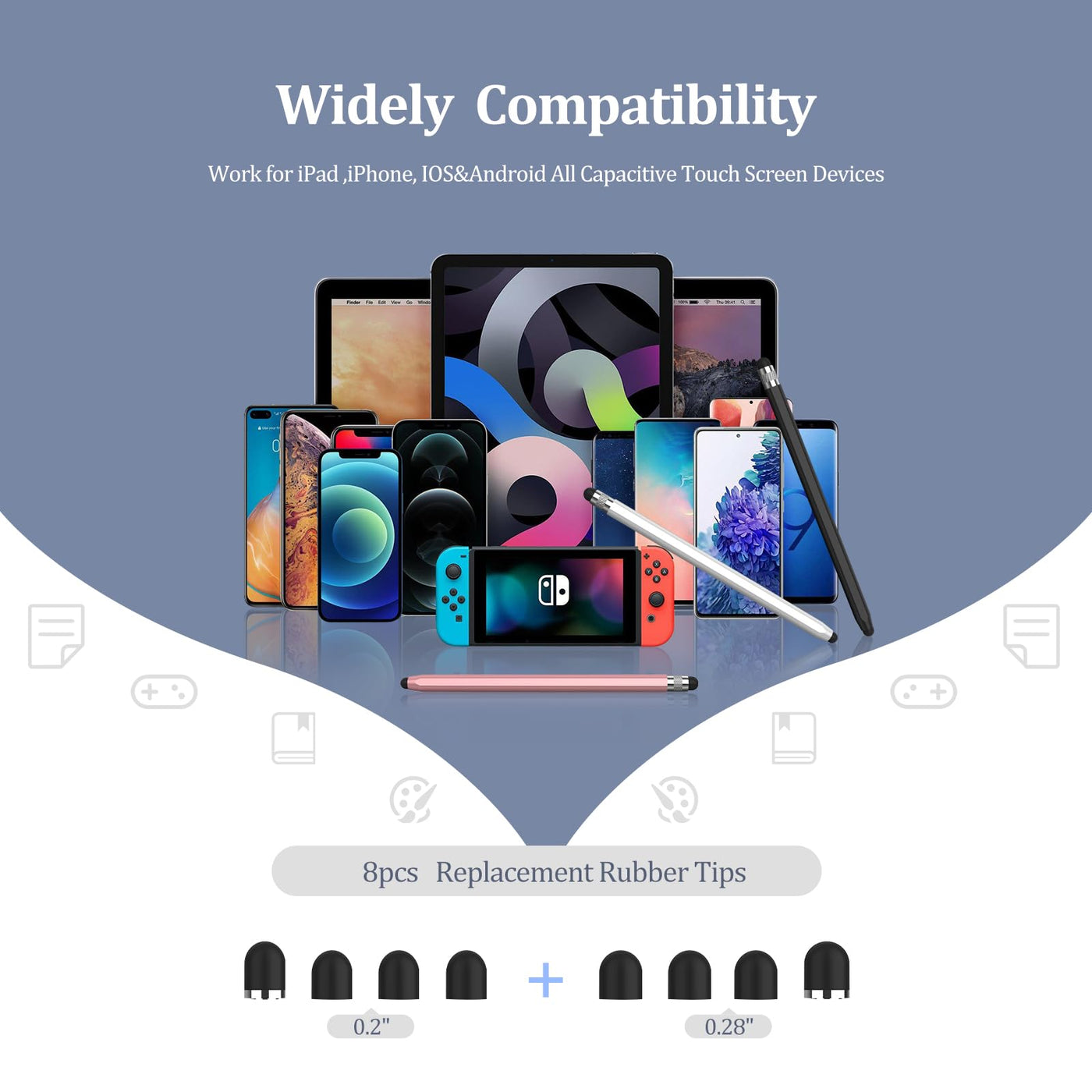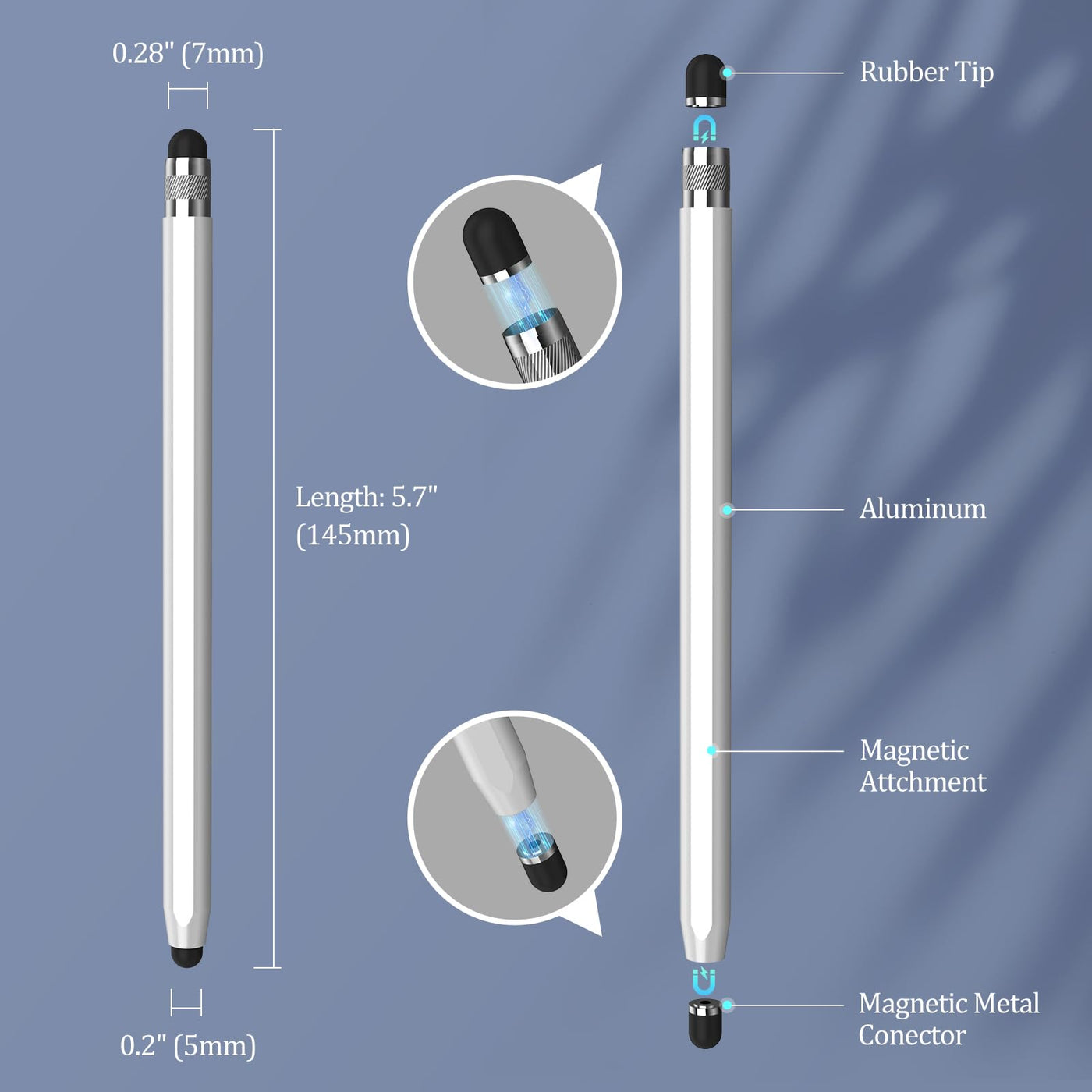 - Easy Replaceable Tips Our tablet pens feature replaceable rubber tips on both ends. With a magnetic design at the top and bottom, replacements are effortless and swift. Each stylus comes with 8 additional rubber tips, effectively extending lifetime of your iPad pencil.