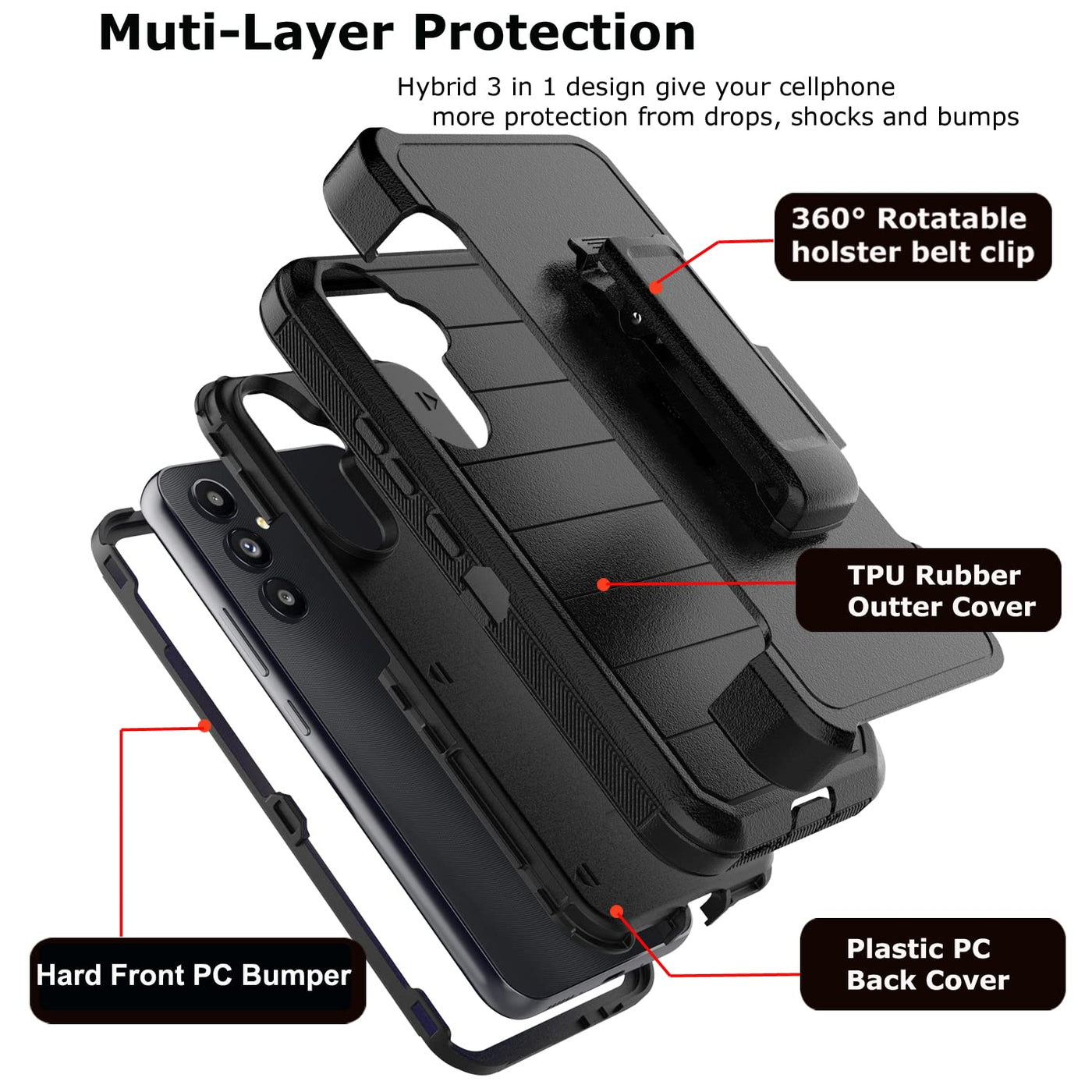 Taxfox Full Body Protection Defender Case for Samsung Galaxy A54 5G. ★1.Unique 3-in-1 stylish design,making your phone stand out from sameness. ★2.Built-in Screen Protector protects your screen well. ★3.Kickstand and 360 rotating belt clip holster convenient design. ★4.Provide military protection for your phone, scratch resistant, anti-fingerprint. ★5.Full access to all features (Cameras, Speaker, Ports and Buttons). Compatible with: Samsung Galaxy A54 5G Package Included: 1x Samsung Galaxy A54 5G Heavy Duty Case With Belt Clip Holster; Built-In Screen Protector After-sale service: 1.One month return and one year warranty service. 2.Your most satisfaction,our all goal. 3.If you have any questions or concerns regarding the product, please don't hesitate to contact us, we will be happy to help you!