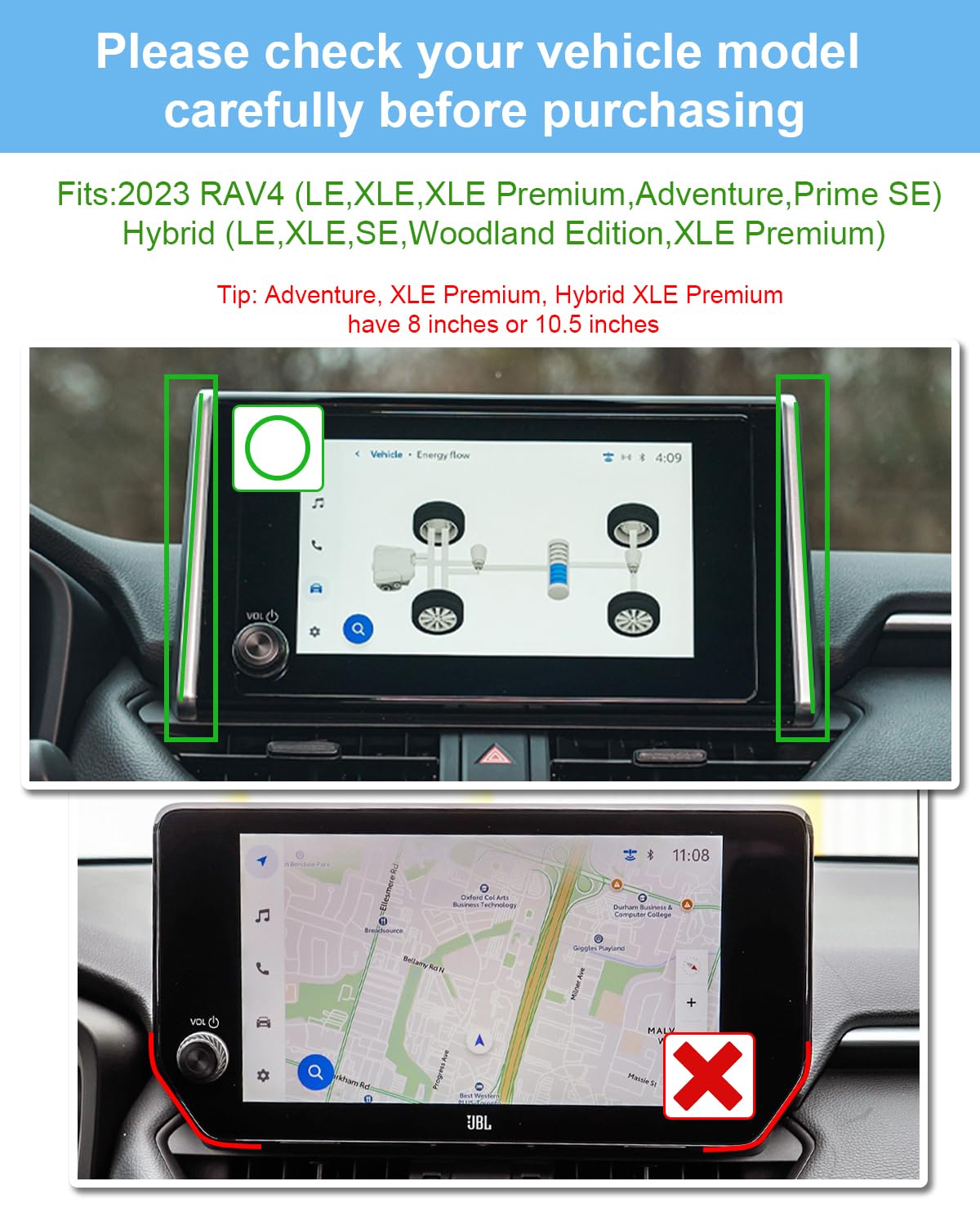 - Friendly ReminderTip: Adventure, XLE Premium, Hybrid XLE Premium have 8 inches or 10.5 inches screen. This 8-inch screen is suitable for trim levels 2023 RAV4 (LE, XLE, XLE Premium, Adventure, Prime SE) Hybrid (LE, XLE, SE, Woodland Edition, XLE Premium) , if you are not sure about your screen size, you can refer to picture 2 before buying.