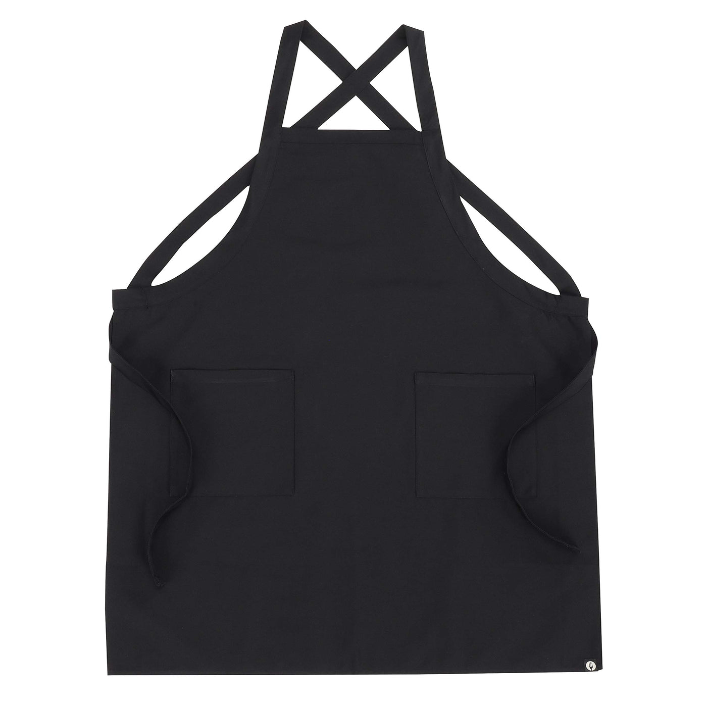 A new addition to our apron line-up, this Cross back Bib Apron features fully adjustable back ties designed to keep the weight off your neck. Made of 65/35 poly/cotton with reinforced stress points, two patch pockets and extra wide ties. Available in black, white, white pinstripe and red pinstripe.