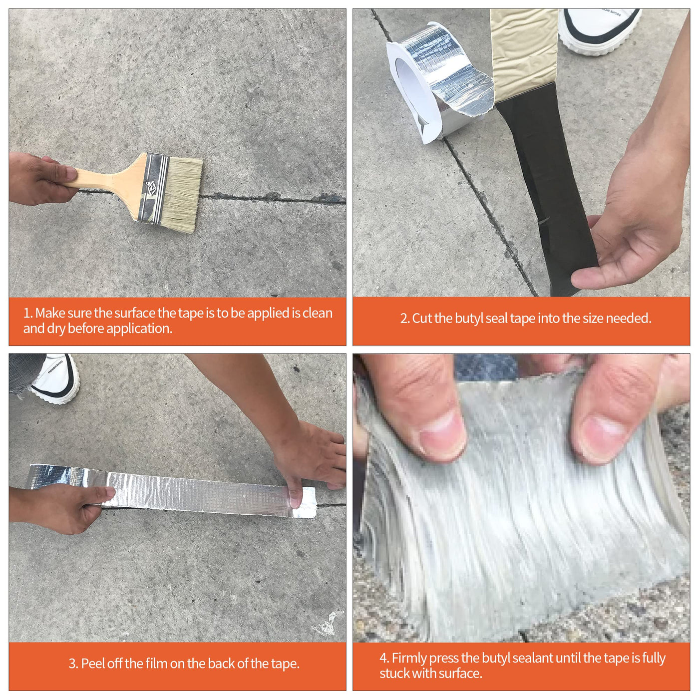 • Safety and High Durability Sealant TapeADHES Butyl Tape was made of pure butyl rubber with upgraded aluminum foil cover, thicker and heavier than similar products, stronger adhesive,toxic-free,safe and tasteless,waterproof, UV resistant, vapor prevent, anti-aging and odorless; provides a better sealing result and longer service time