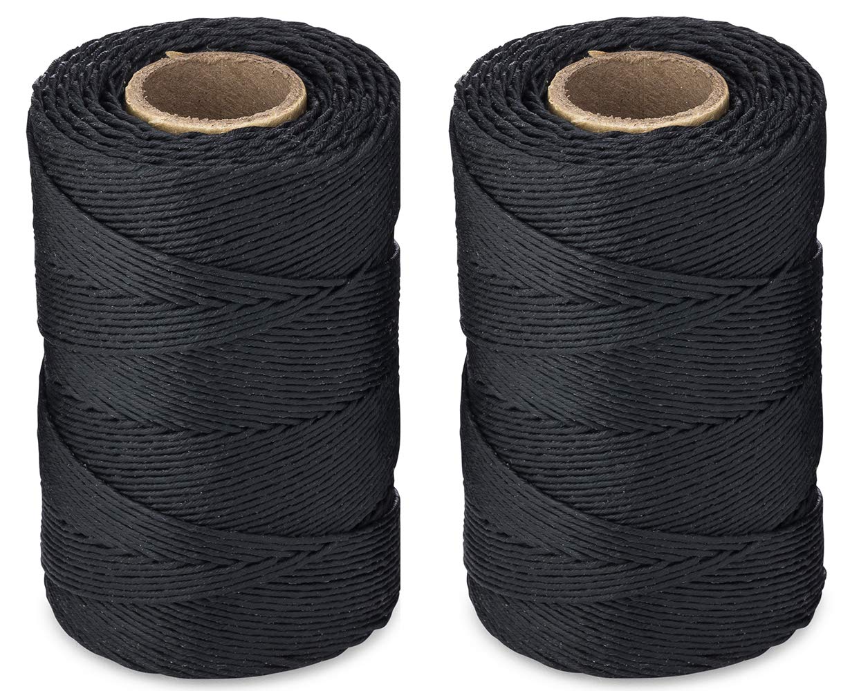 Waxed Twine 160 LBS Tensile Strength (2-Pack) 1,005 feet per roll (335 Yards) | 9-ply | 100% Polyester | Black Cable Tie Down Wax Lacing Cord