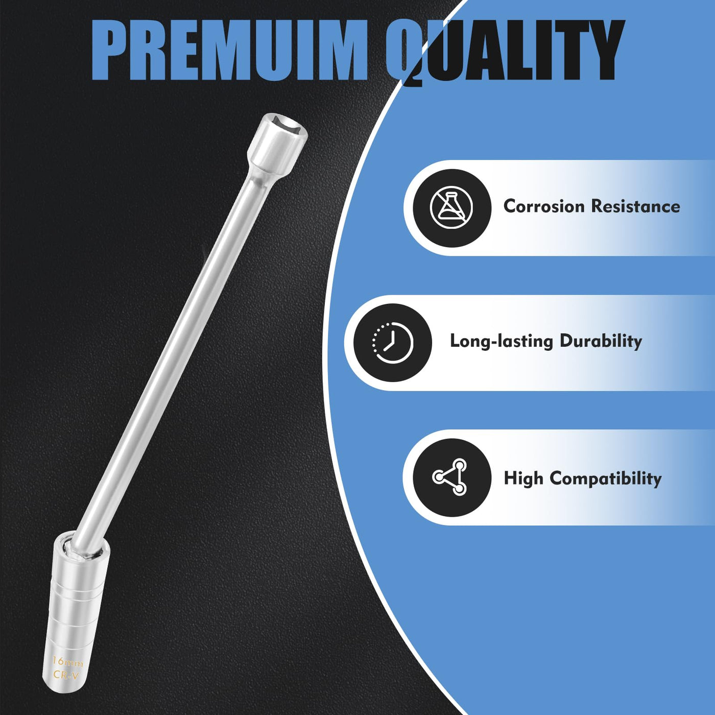 - [360 Swivel Head for Hard-to-Reach Applications] The innovative ball-joint swivel mechanism allows full 360 rotation, enabling access to angled spark plugs without constant wrench repositioning. Combined with the extra-long 10" shaft, this socket effortlessly reaches deep-set plugs in V6 and V8 engines, eliminating the need for multiple extensions. The smooth swivel action maintains torque transfer while working in confined spaces, saving both time and effort during maintenance.