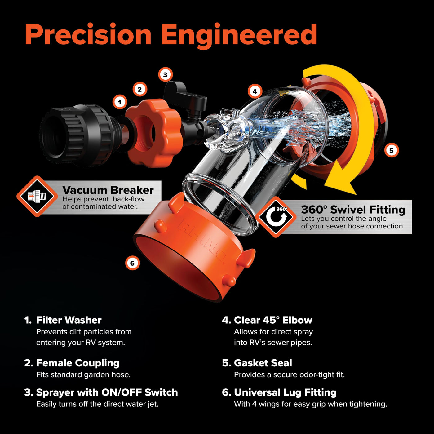 - Visible Results: With its clear 45 elbow, this RV tank cleaner allows and real-time monitoring of your tank's cleaning process, ensuring a thorough rinse of your tank every time. It's a simple yet effective solution for your RV sanitation needs