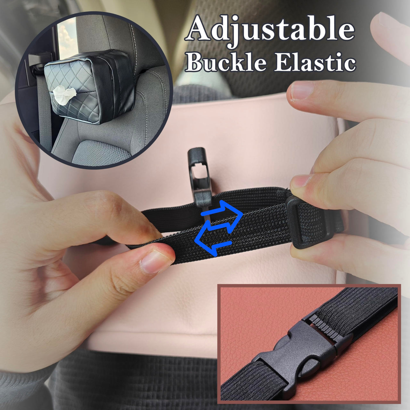 - Velcro & Buckle Elastic: JFOMOYGI tissue box cover can be fixed wherever you wish using Velcro. To prevent altering the application effect, make sure the surface of the adhesion is clean before applying Velcro. With a adjustable highly elastic buckle and reliable Velcro, the car tissue holder easily adheres to your car's back seat or center console, ensuring that tissues are always within reach and won't fall out and get dirty on bumpy drives.