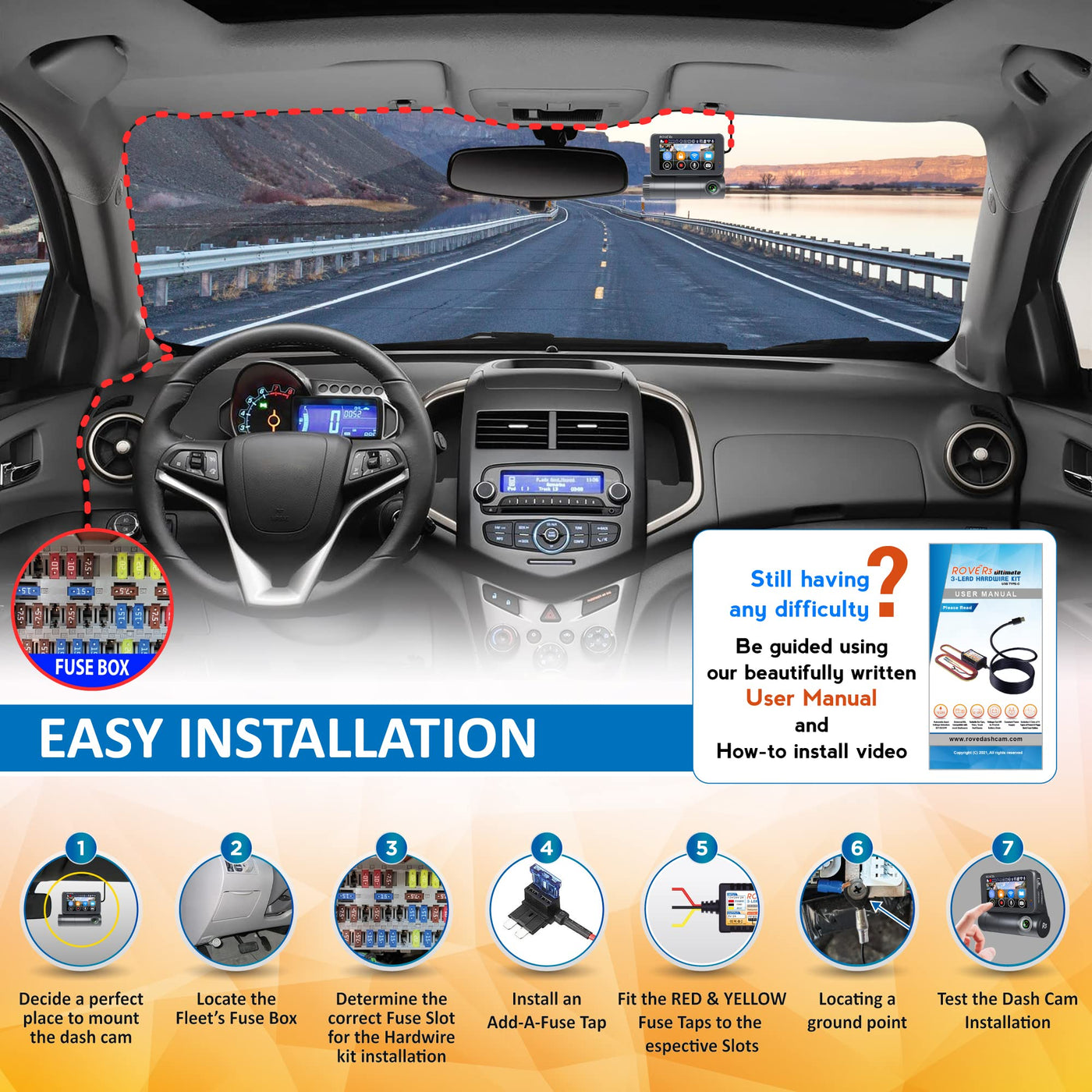 - A Complete dashcam hard wiring kit All necessary fuse taps, volt meter, and other components are included in our kit for an easy installation and user experience that you will only get with ROVE.