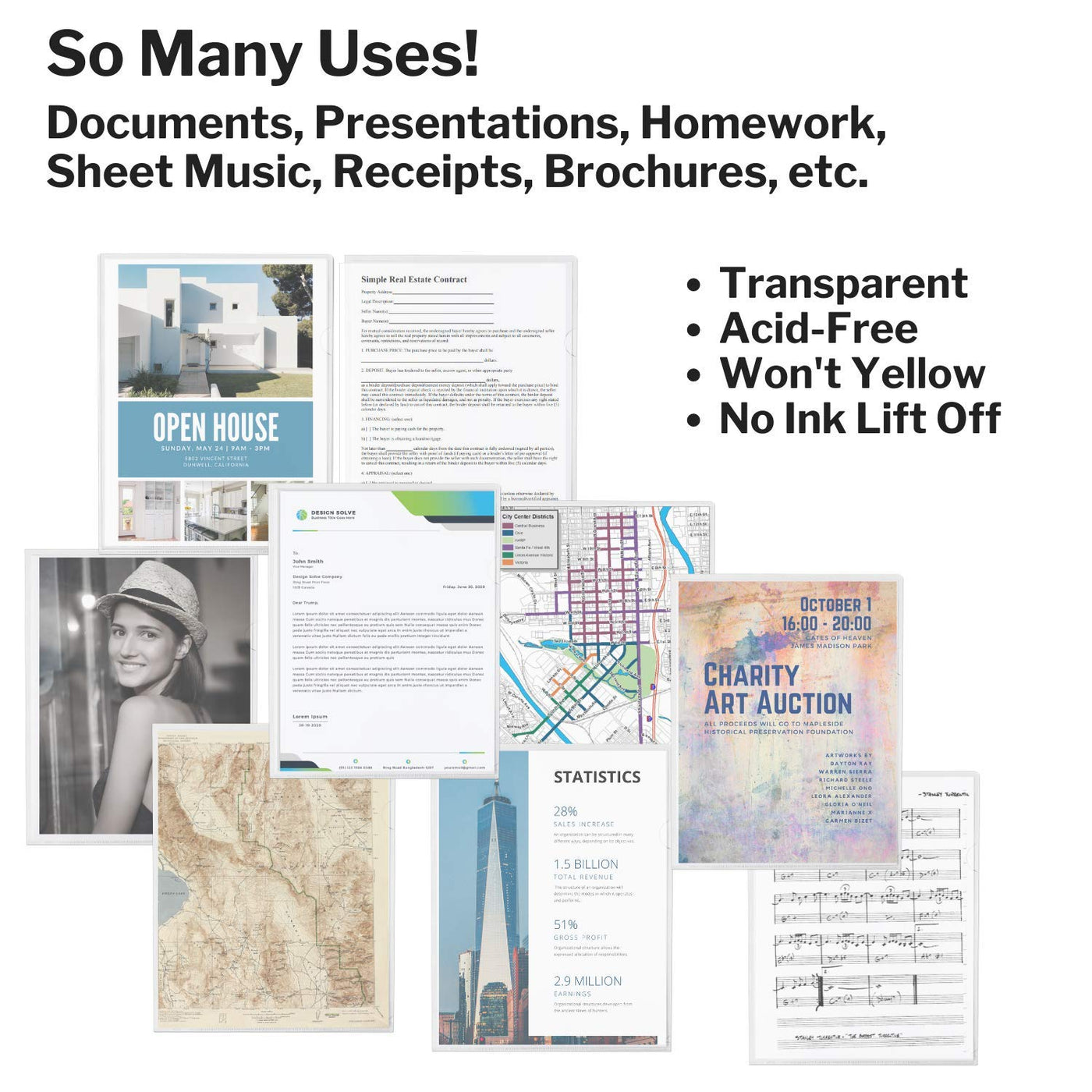 Dunwell Clear Plastic Project Sleeves (6 Pack), 8.5x11" Letter Size, Clear File Folders, L-Type Clear Document Folder, Transparent Folder, See Through Project Sleeves, Acid-Free Poly, Archival Quality 6 Pack