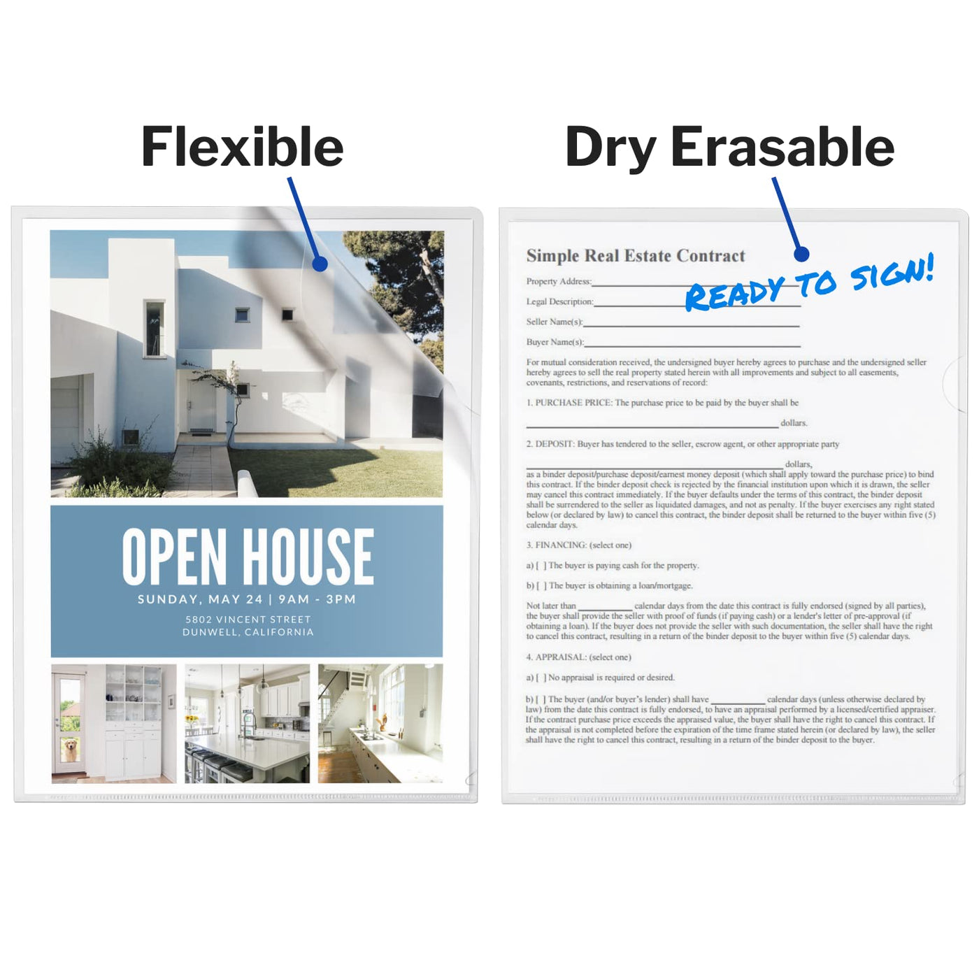 - Stay Organized: Plastic Sleeves are made of PVC-free poly plastic. Write-on file jacket is dry erasable, easy to clean. Acid-free, archival quality, no-copy transfer, no ink lift-off.
