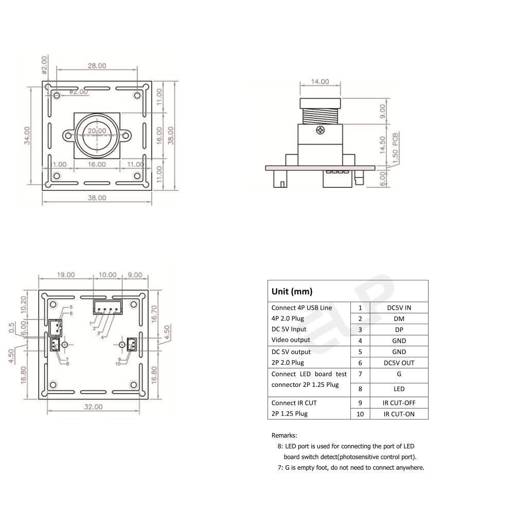 - Can support microphone&IR Cut for low light or night image vision optional