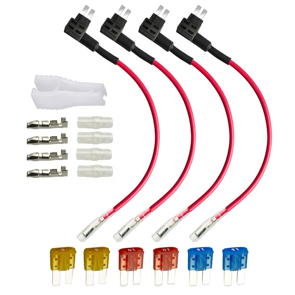 Gebildet 4pcs 12V-24V Add-a-Circuit Micro2 Fuse Tap, Piggy Back Blade Fuse Holder with Wire Harness, 6 pcs Micro 2 Fuse (5A 10A 15A) and Fuse Puller