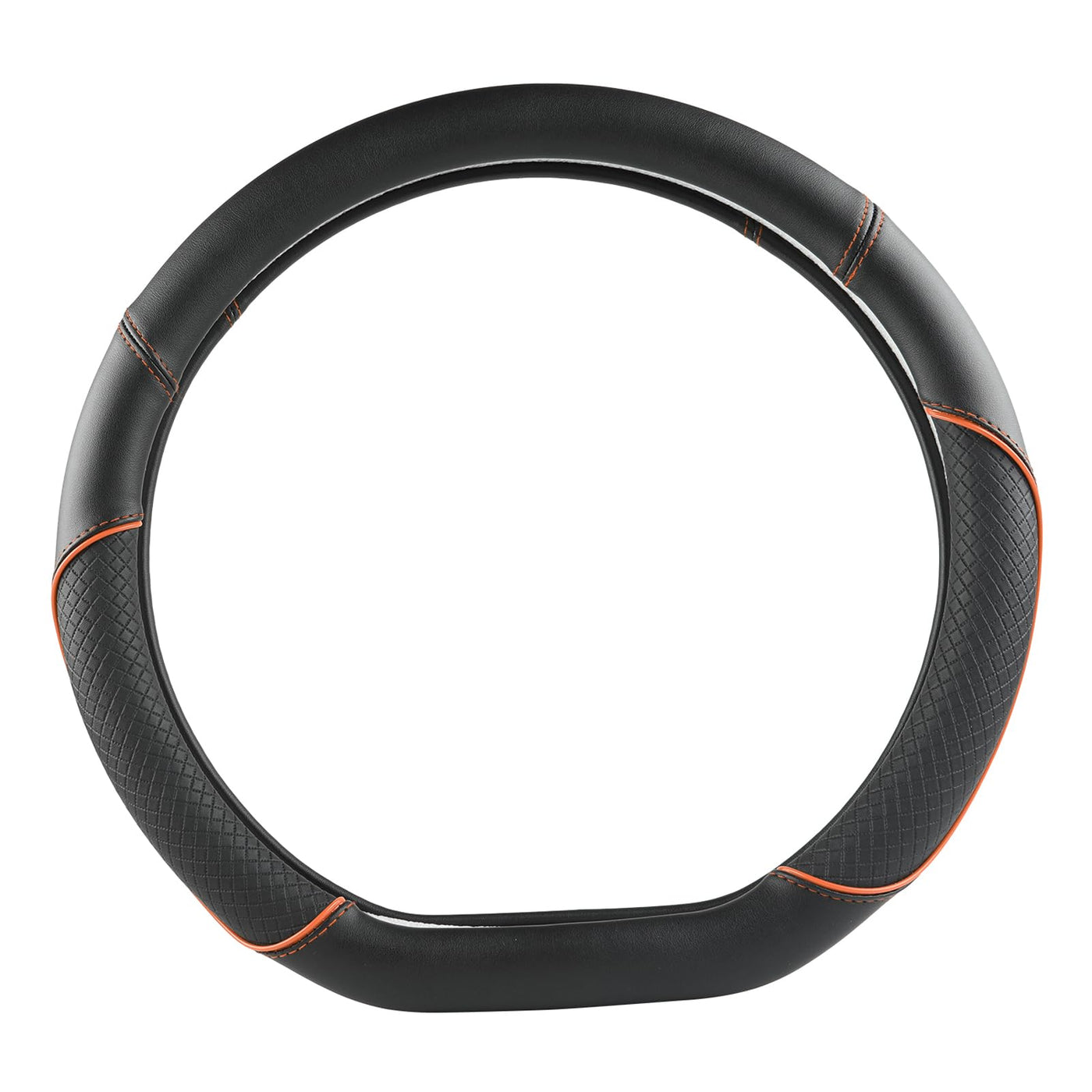 GIANT PANDA D Shape Steering Wheel Cover for Nissan Rogue Kicks - Auto Car Steering Wheel Cover Customized for Nissan Altima Sentra(Black+Orange Line-D-Shaped) D-Shaped Black+Orange Line