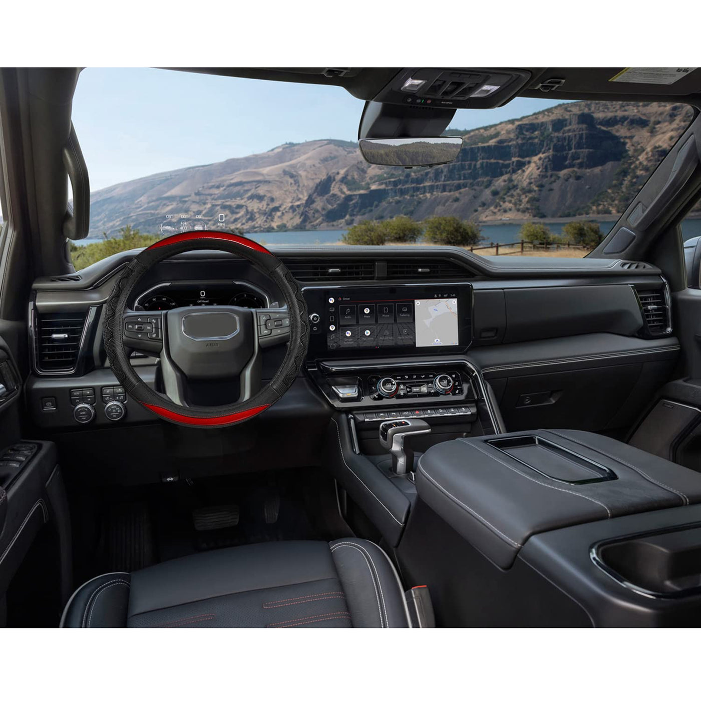GIANT PANDA Steering Wheel Cover for GMC Sierra Acadia Terrain Yukon(3D Honeycomb-Red-Standard Size)