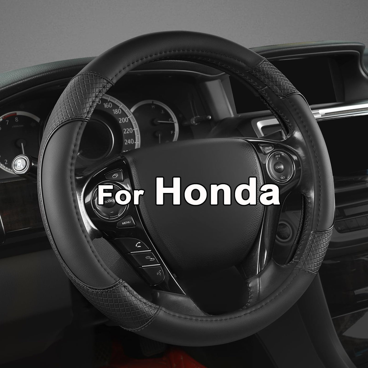 - PREMIUM MATERIAL This steering wheel cover is made of microfiber diamond pattern leather. It can reduce hand sweat to increase comfort. It is wear-resistant and durable.
