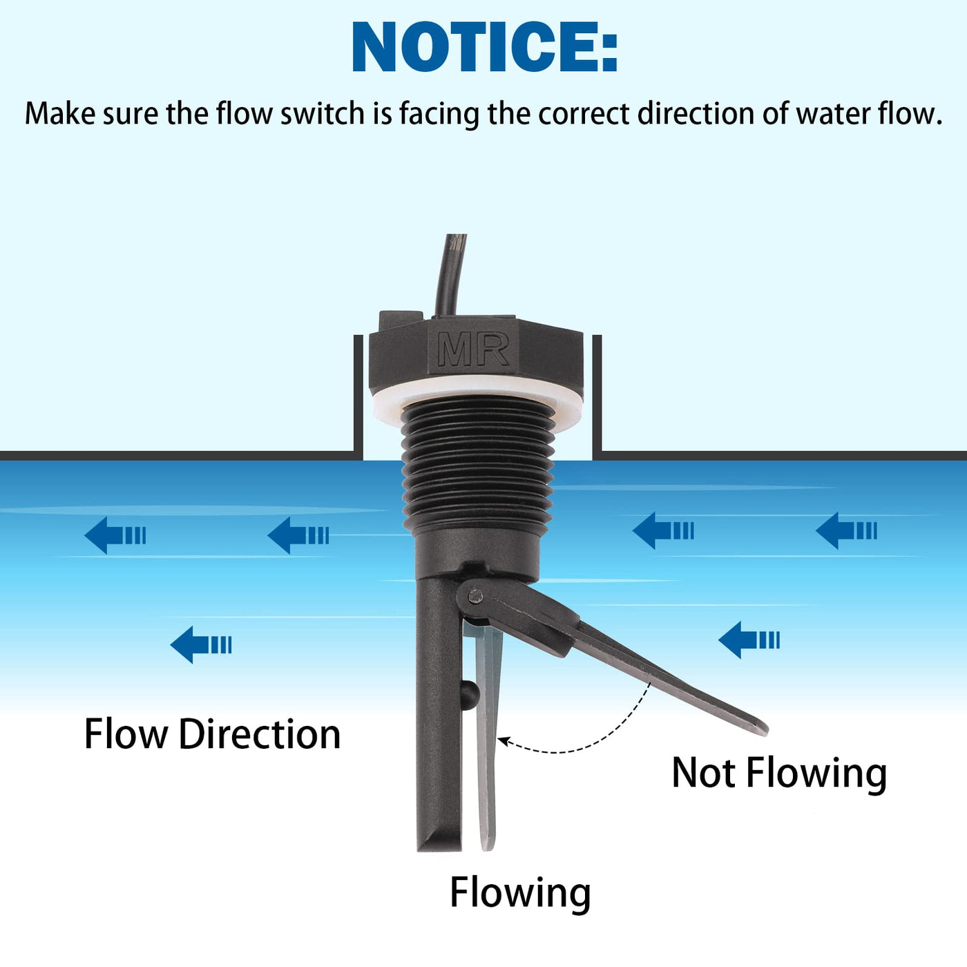 - EASY TO INSTALL - No modifications needed. Just need to screw the flow sensor into the Tee housing (NOT included) and plug in the phone jack cable at the controller. Unplug the existing (old) flow sensor and wrap enough tape and screw the switch into the run pump. ( Note: DO NOT OVERTIGHTEN when screwing in the switch ). Make "no flow" warning light to go off after simple installation!