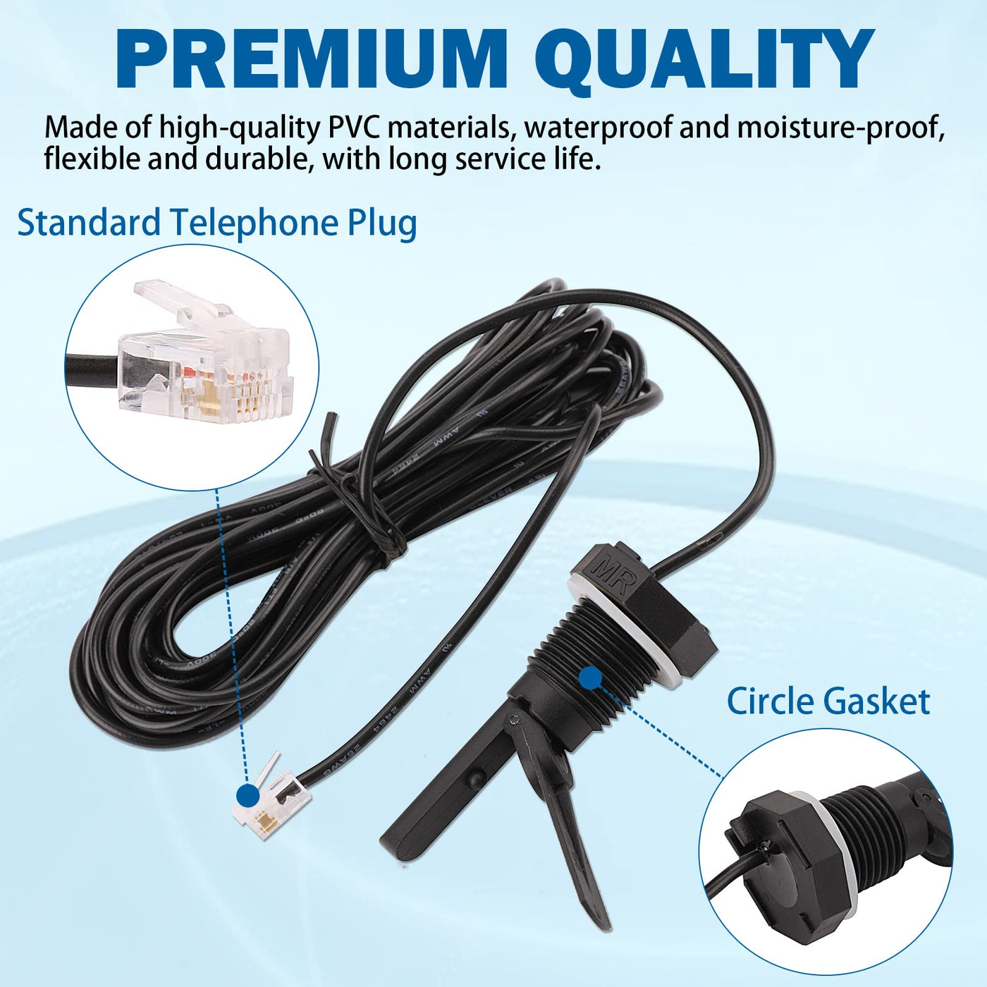 - PREMIUM QUALITY - Swimming pool flow switch is made of high quality pvc materials, durable and reliable. hayward flow sensor for salt system comes with a 15-foot cable, one end is a standard phone jack connection and it has a circle gasket and a round of tape. Sealing tape and rubber gasket are included to prevent leaks.