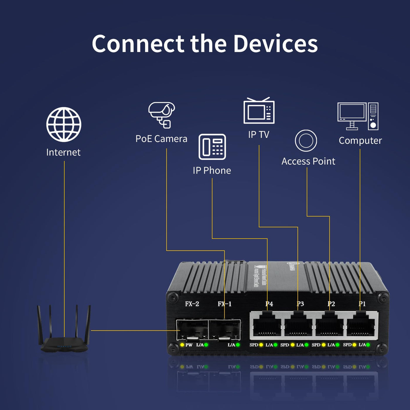 - Stable and Quiet Durable aluminum case with 6KV lightning protection, fanless silent design for more power saving, small size, wide temperature range -40~75C, LED indicator lights, stable operation, easy to maintain network status.