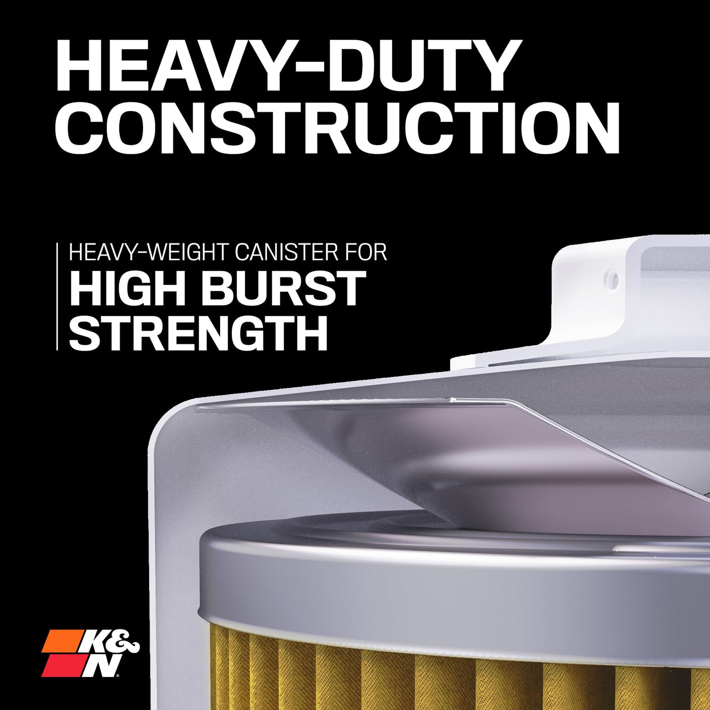 K&N premium oil filters are meticulously engineered to offer outstanding filtration and engine protection. The heavy-duty canister is engineered to be exceptionally durable, and a one-inch welded hex nut can be used for quick and easy filter removal. Each filter is specifically designed to withstand the service intervals recommended by vehicle manufacturers, and is protected by the K&N 1-Year Limited Warranty.Compatible Vehicles:2011-2022 BUICK Enclave2022 CADILLAC CT42020-2022 CADILLAC CT52015-2022 CADILLAC Escalade2015-2022 CADILLAC Escalade ESV2017-2022 CADILLAC XT52020-2022 CADILLAC XT62019-2022 CHEVROLET Blazer2016-2022 CHEVROLET Camaro2018-2022 CHEVROLET Express 2 CHEVROLET Express 35002022 CHEVROLET Express Cargo2022 CHEVROLET Express Pasajeros2014-2022 CHEVROLET Silverado 15002022 CHEVROLET Silverado 1500 LTD2015-2022 CHEVROLET Suburban2015-2022 CHEVROLET Tahoe2011-2022 CHEVROLET Traverse2011-2022 GMC Acadia2018-2022 GMC Savana 2 GMC Savana 3 GMC Sierra 1 GMC Sierra 1500 Limited2020-2022 GMC Sierra 2500 HD2020-2022 GMC Sierra 3500 HD2015-2022 GMC Yukon2015-2022 GMC Yukon XL2020-2021 CHEVROLET Silverado 2500 HD2020-2021 CHEVROLET Silverado 3500 HD2018-2020 BUICK Regal Sportback2016-2020 CADILLAC CT62012-2020 CHEVROLET Impala2011-2019 BUICK LaCrosse2016-2019 CADILLAC ATS2016-2019 CADILLAC ATS-V2016-2019 CADILLAC CTS2014-2019 CADILLAC CTS V-Sport2013-2019 CADILLAC XTS2019 CHEVROLET Silverado 1500 LD2015-2019 GMC Yukon Denali2015-2019 GMC Yukon Denali XL2016-2018 CHEVROLET Silverado 1500 Hybrid2016-2018 GMC Sierra 1500 Hybrid2011-2017 CHEVROLET Equinox2017 GMC Acadia Limited2011-2017 GMC Terrain2011-2016 CADILLAC SRX2014-2016 CHEVROLET Impala Limited2015-2016 CHEVROLET Impala Limited Police2014 GMC Sierra Denali