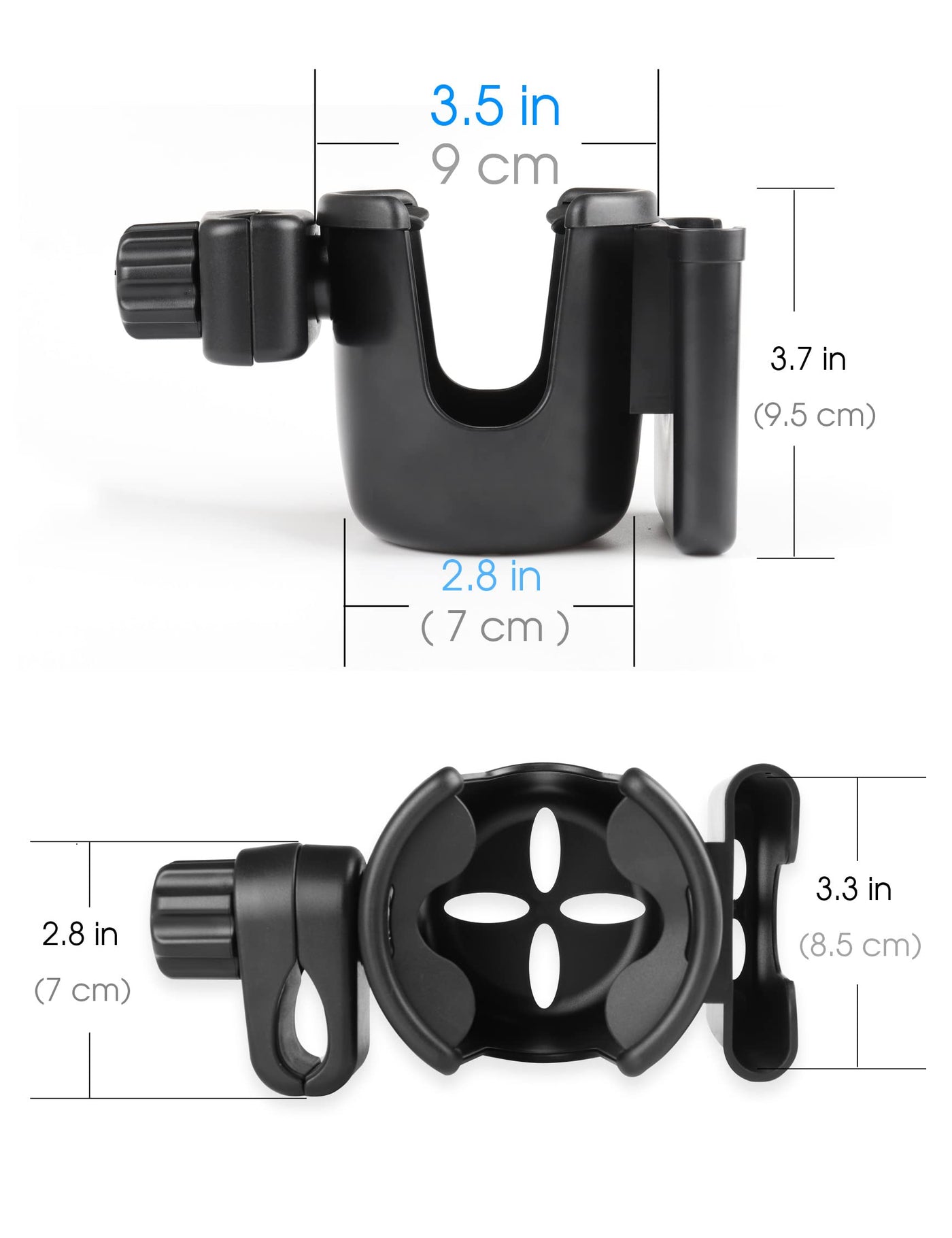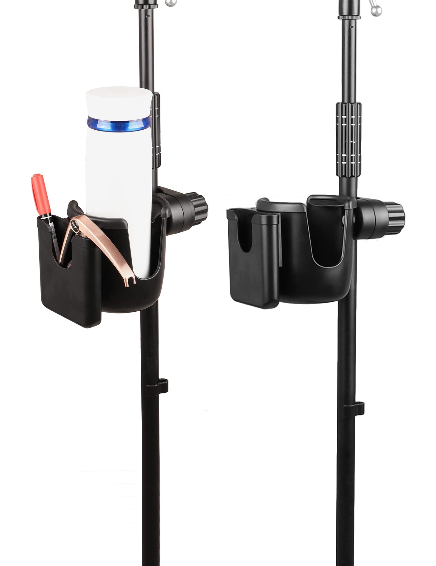 - Fit Most Stand The clamp designed with rubber pad, it helps lock the cup holder onto the bar without movement. The clamp can also rotate 360 degrees , and it is adjustable to fit different size rods which diameter is 0.55-1.57 in / 1.4 cm- 4 cm.