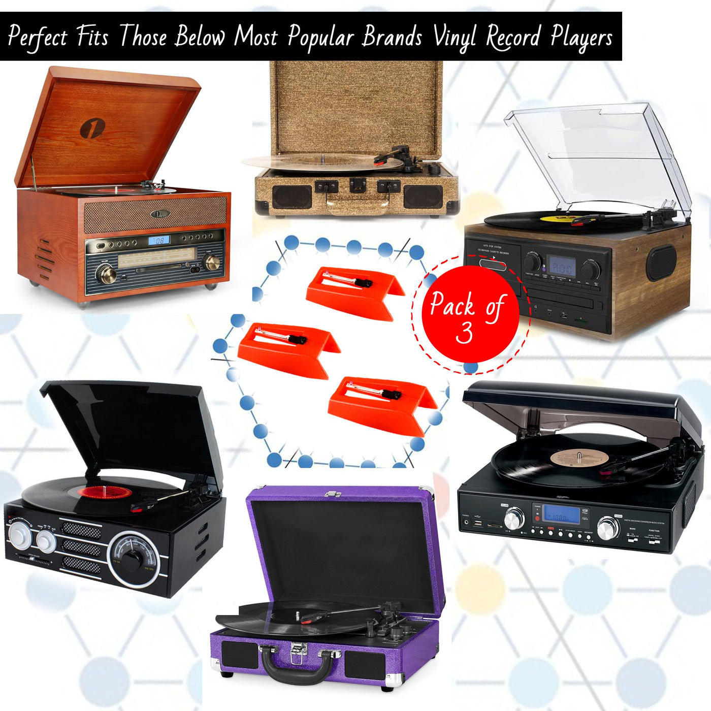 Record Player Needle, Turntable Stylus Record Needles Replacement for Crosley, 1byone, Boytone, LP&No.1, Victrola, and Jensen Vinyl Record Players(Pack of 3) The Most Commonly Turntable Stylus - It's not universal version, but the most commonly used record player needle replacement for many record players in the market now, such as Crosley, Jensen, Victrola, 1byone, Boytone, LP&No.1, and others. Package Content: 3 x Turntable Record Player Needles 1 x Plastic Flip Box Compatible with the below vinyl record players: Crosley: CR8005A, CR8005D,CR8005E, CR8005F,CR8005U,CR8009A, CR8016A, CR8017A, R8805A, R7014A, CR70, CR7002A, CR73, CR74, CR77, CR78, CR79, CR704, CR711, CR712CD, CR87CD, R7008A, G6082, CR6003A, CR6005A, CR6007A, CR6008A CR6017A, CR6019A, CR6019D, CR248, CR2405, CR27, CR40, CR2D, CR43, CR44, CR46C, CR47,CR48,CR49, CR67, CR69, CR53, CR50TW; Victrola: VSC-400SB,VSC-450SB, VSC-500SB,VSC-550BT, VSC-580BT,VSC-590BT, VTA-60, VTA-65, VTA-200B, VTA-204B, VTA-205B, VTA-220B, VTA-245B, VTA-240B,VTA-250B. TA-255B, VTA-270B, VTA-290B, VTA-300B, VTA-320B, VTA-370B, VTA-600B, V1A75, VTA-750, VTA-750B VTA-800B, ITCDS-6000, ITNP-S1, ITRR-501, ITUT-420, ITUT-5000, ITVS-200B, ITVS-550, ITVS-750 ITVS-750B, ITVS-760B, TVS-550BT, VWM-100SB-LG, VM-100C, VM-130, V30, V50-200; Boytone: BT-17DJB, BT-17DJM, BT-17DJS, BT-19DJB-C, BT-19DJM-C, BT-19DJS-C, BT-16DJB-C, BT-17TB, BT-17TBC, BT-21DJM-CDSP, BT-14TBB-SP, BT-15TBSM; Jensen: JTA-222, JTA-230, JTA-300, JTA-380, JTA-410, JTA-420, JTA-450, JTA-460, JTA-475, JTA-222NDL; Capehart: CRN1, CH196B, CH196R, CH196PK, CH196OR, CH196B, CH196GY, CH196DB, CH196BL; York Yorx: M2408, M2409, M2676, M2202, M2203, M2408, M2409, Q802A; Soundesign: 5868, 5869, 5871, 6821, 6822, 6833, 6842, 6846, 6848, 6854; TechPlay: ODC5, 15, 16, 17, 18, 26, 27, 28, 35, 38,110; Teac: DC2800, GF30, GF180, GF300, GF600, STL103; and More......... IF NOT LISTED ABOVE, PLEASE MESSAGE US TO CHECK BEFORE PURCHASING,THANK YOU!